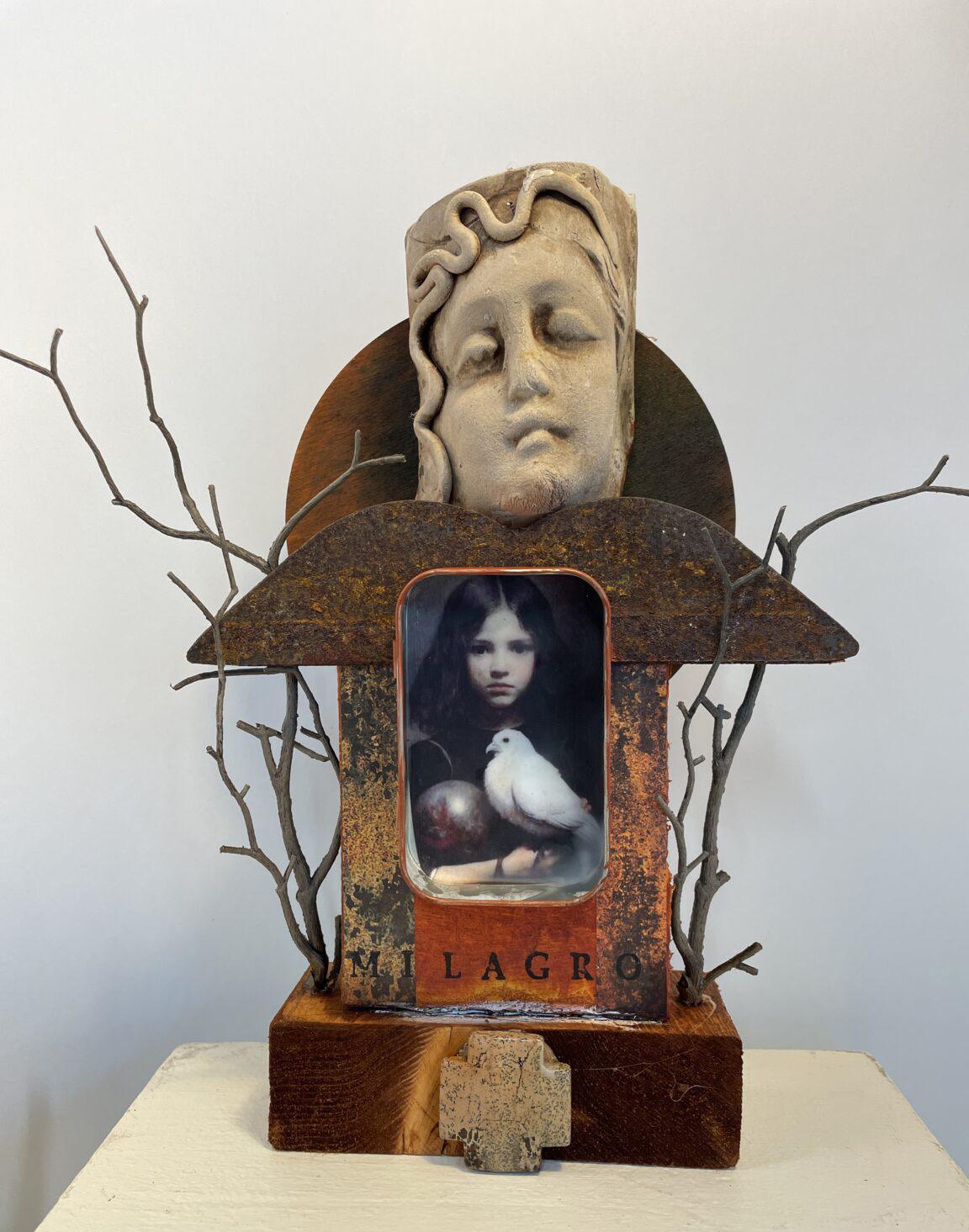 This term, I expanded my mixed-media practice by incorporating my photography into hand-built structures using wax, paint, dried foliage, collected treasures, and other remnants of the past.