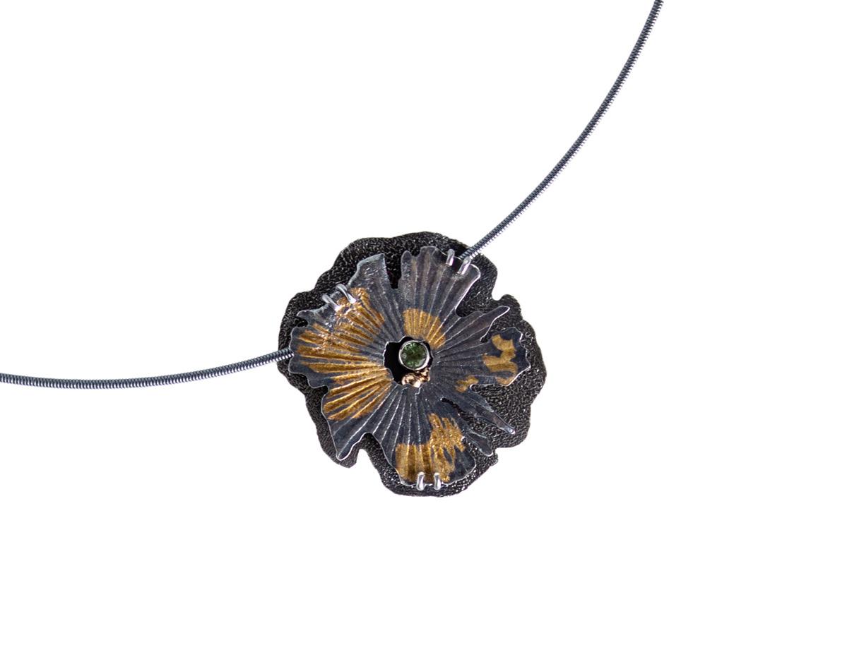 24k keum boo over sterling silver; 18k gold and green sapphire