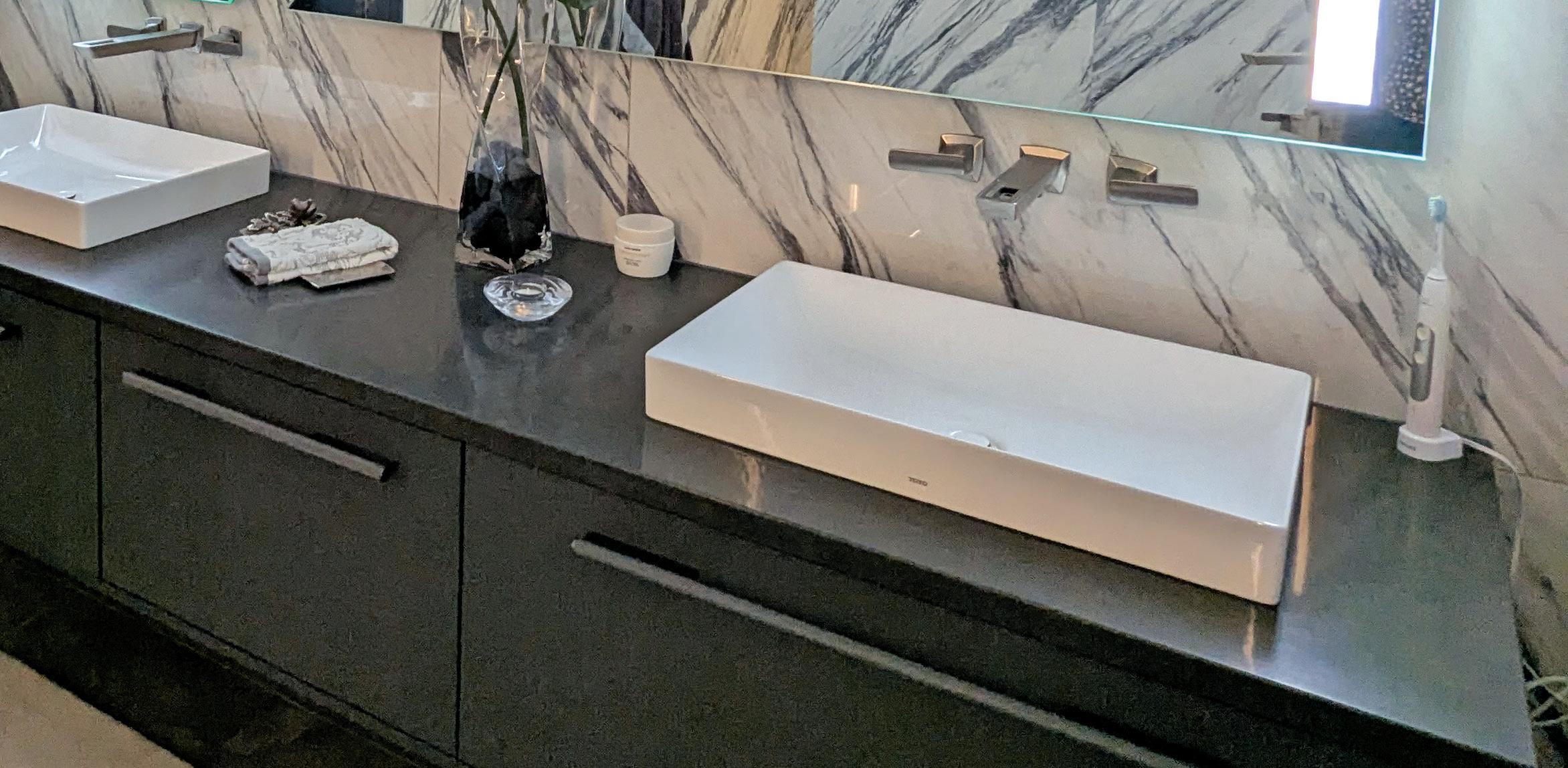 Materials came from both local sources and as far as Paris. McClellan has visited galleries in cities near and far. Kitchen cabinets are Team 7 from Austria through the German Kitchen Center. The countertops are Neolith sintered with PITT cooking burners. The majority of the furniture came through Roche Bobois, but McClellan also found pieces through RH, Dania and Cantoni.