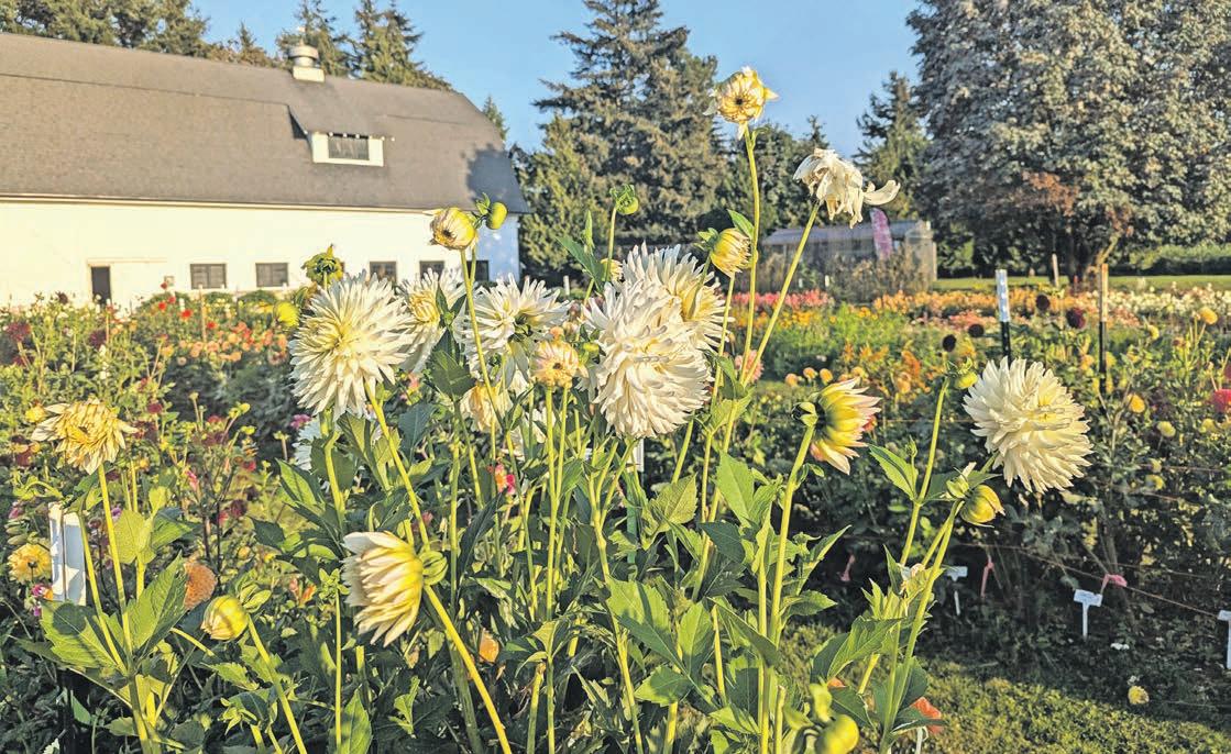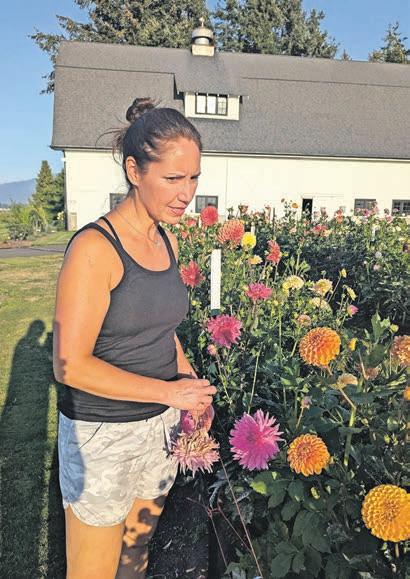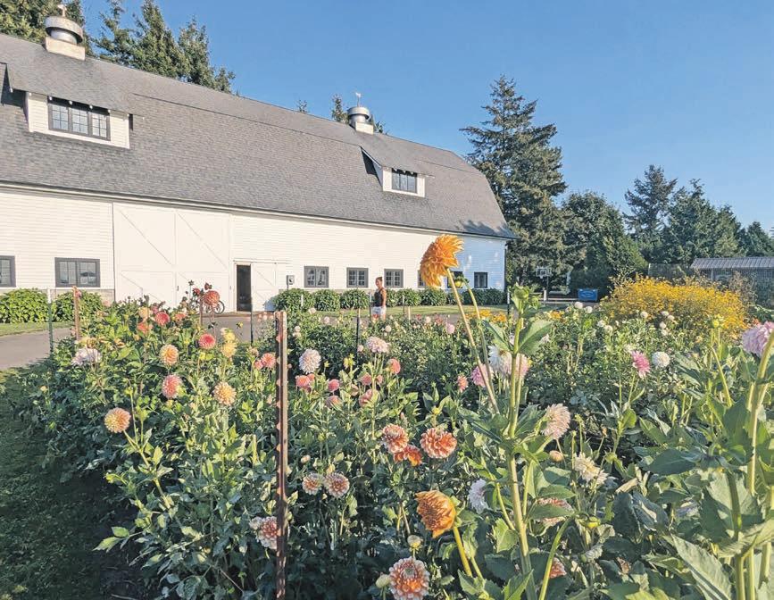 “I like to grow, cut and arrange and he does all of my heavy work,” Kristy said. “He’ll mow behind me and clean up my mess. His job is watering so everything is on a drip system. He’s very e cient.” e long-time oncology-certi ed RN made her way into Bellingham to work at the cancer center as well as operate the farm. While she transitioned into her new home, Kristy found herself a patient there as well. She has talked openly about ghting cancer and has found support in this community from other nurses who also have had cancer and has found kind and supportive neighbors. e garden is also a healing place. Actually, both her old one and her new one. Before moving, they lived at another farm further down Noon Road. A retired nurse and her husband relocated from California. e two women, who have become friends in the process, are sharing a garden space there as well.