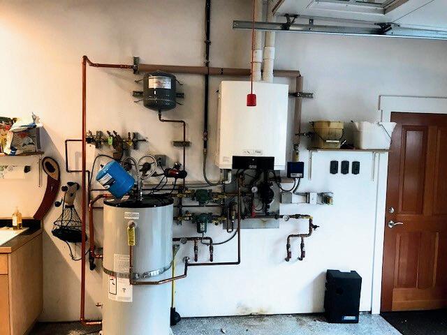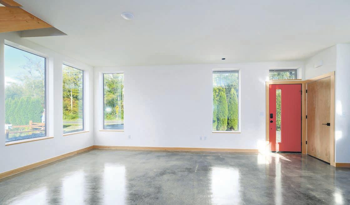 e home is heated and cooled with a highly e cient Chiltrix air-to-water heat pump. e oor has radiant heating which takes latent ambient heat from outside and runs it through the concrete slab.