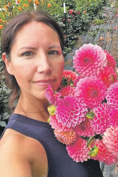My hubby thinks the kids eat all the cookies and I silently let them take the fall for it. Ninety percent of the time I am in dirty farm clothes or my nursing scrubs, but I love pretty dresses and have a closet full of them. In 2012, I did an Ironman race. Sports have always been a big part of my life, but these days I enjoy watching my boys play sports more than playing them myself. is is my fth ower growing season, and I am so grateful to all of you who have followed our journey and cheered us on. I love seeing your faces at the market and appreciate you stopping by the farm.” e Facebook page for Big White Barn Floral Co. introduces the operation: “Oh hey there. I’m Kristy the lady farmer behind the owers you see in these little squares. I am a mom of two boys and a wife to the most supportive husband. I couldn’t do farm life without them. A few fun facts about me. I was born and raised in British Columbia. I left Canada to be a travel nurse in my 20s and never went back.” e spot in Canada is just north of Lynden within Langley, British Columbia on a farm near the large provincial Campbell Valley Regional Park. At that time, it had a gravel pit down the road. e pit has been replaced by high-end equestrian facilities. Many of metro Vancouver lming locations have included that scenic area regularly. “We had horses growing up and my Dad’s always been a gardener. He’s always grown food, so I’ve always grown food. I didn’t start growing owers until Mike and I got married in 2019. I wanted to grow all of our food and owers for the wedding.”
