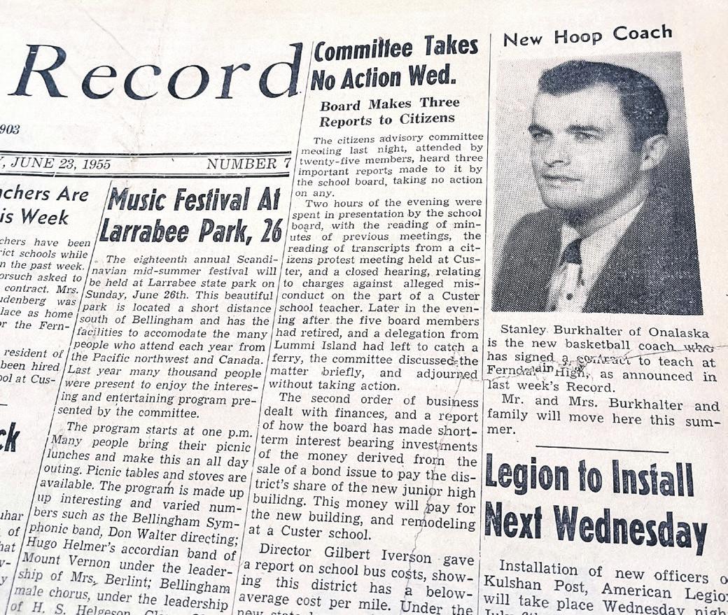 Stanley Burkhalter of Onalaska is the new basketball coach who has signed a contract to teach at Ferndale High, as announced in last week’s Record.