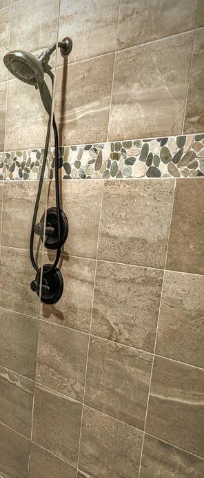 As usual, Del practiced his “creative as you go” approach, knowing as a builder what works best and where design can be modi ed for a better outcome. For instance, he found a way to expand bathroom space when that seemed too constrictive.