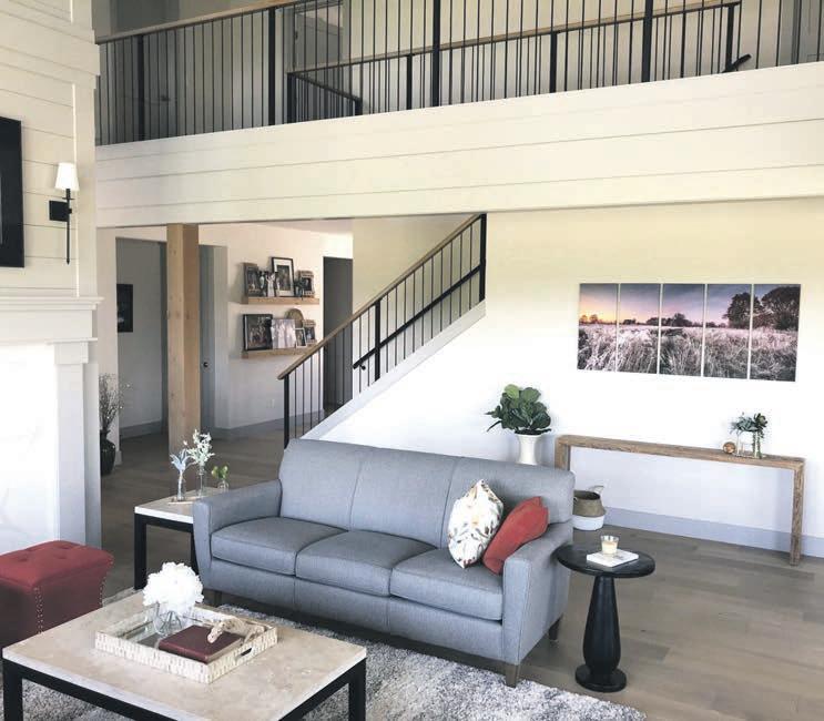 e open railing stairway to the second oor is readily accessible from the front door. O the “catwalk” above are the two bedrooms for Logan and Kiley, kids still living at home, and also the guest bedroom. e master suite is on the main oor. Tucked o a second hallway to the back are a butler’s pantry,