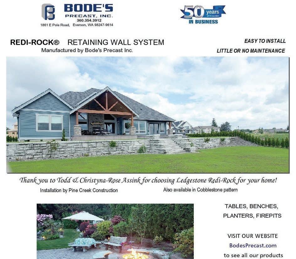 Spring Home & Garden B8 Lynden Tribune | Wednesday, June 24, 2020 | Ferndale Record Stone & Landscape Supply Good Old F as hion e d S erv i ce ” ” Natural Stone Allan Block Brick & Pavers Pond Supplies Masonry Supplies Gravels & Soils Compost & Bark Engraving & Memorials OPEN 7 DAYS A WEEK I-5 / Slater Rd. (Exit 260) 383-909 0 ww w .no rt h starst on e .n et ( ) 36 0 HUGE INVENTORY - DELIVERYAVAILABLE www.everkeptconstruction.com 360-318-7699 Custom, Specs, and Remodels Bud Ammons Tim Wiersma