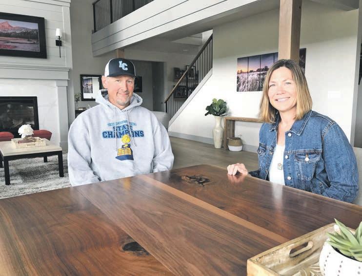 Del Roetcisoender proudly wears the state championship sweatshirt of daughter Kiley's basketball team title for Lynden Christian this past March, and Nicole is a teacher at the high school as well. They are enjoying both the indoor and the outdoor patio amenities of their new home completed in March in Blankers Estates on the Ridge in southwest Lynden. (Calvin Bratt/Lynden Tribune)