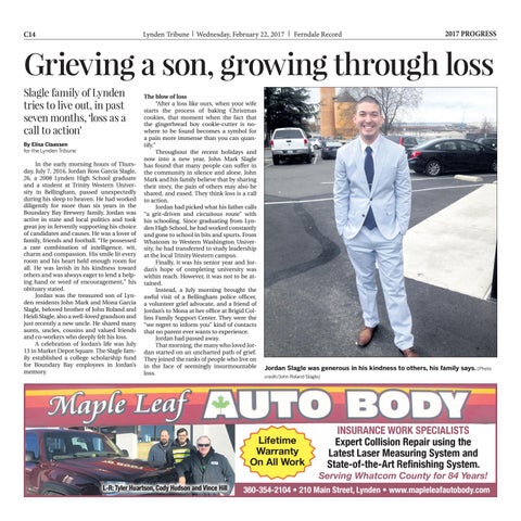 Grieving a son, growing through loss Slagle family of Lynden tries to live out, in past seven months, ‘loss as a call to action’ By Elisa Claassen for the Lynden Tribune