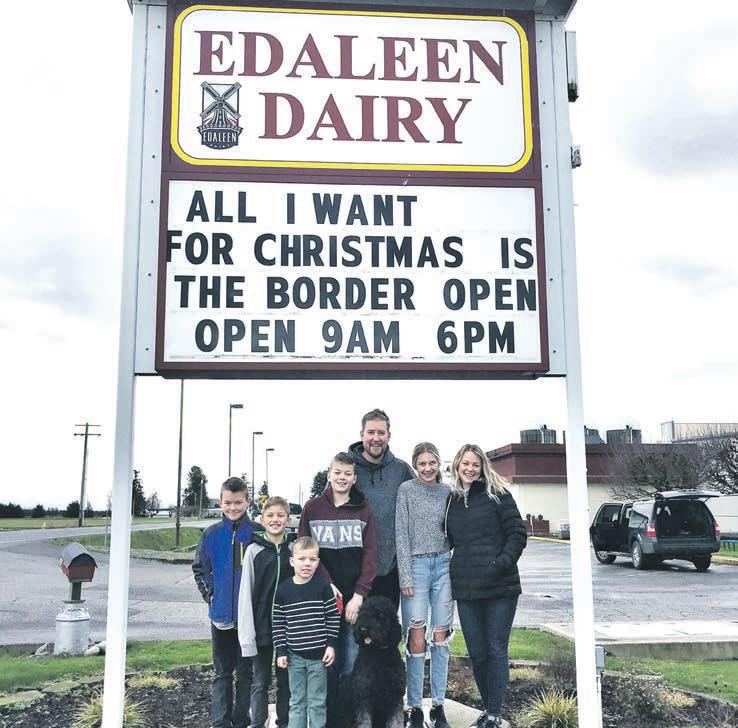 “We are happy with where we are at and that we can be together,” she emailed last week, “but the border closure continually adds stressors to our lives and it has been difcult not to be able to see family or be living at our property in the county (Whatcom). We are hoping that there will be some changes soon!”