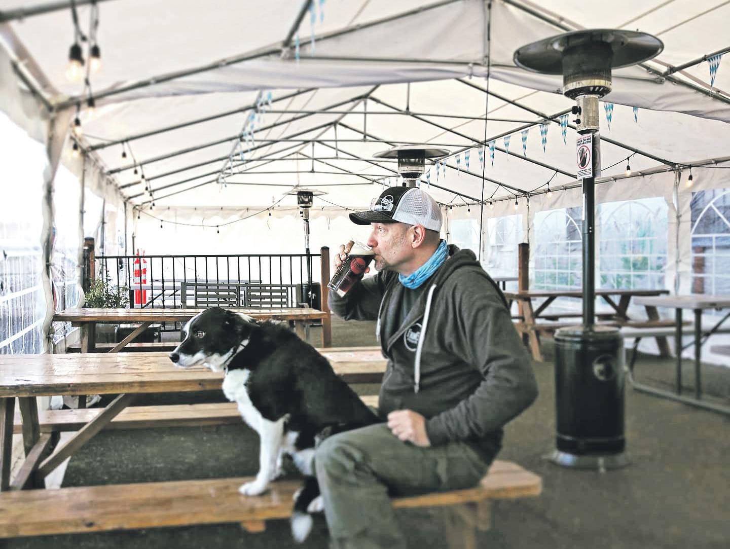Brewery co-owner Scott White enjoys a pint in the outdoor tent at FrinGe Brewing, which allows patrons to drink and enjoy some food from local food trucks and eateries, even during inclement weather. (Courtesy photo)