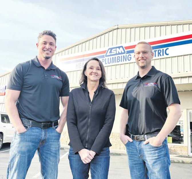 Marketing Manager Lauren Ebert is pictured on a job with Jeremiah Finkbonner and Tyler Hionis. LSM Heating Plumbing Electric offers heating and cooling services, gas fireplaces, water heaters, plumbing, electrical work, whole-home generators and commercial refrigeration. The company’s employees handle kitchen hoods and exhaust systems, restaurant equipment repair, refrigerated trailer rentals, custom sheet-metal fabrication, custom handrails, stairs, awnings, countertops, welding and both residential and commercial new construction and retrofit services.