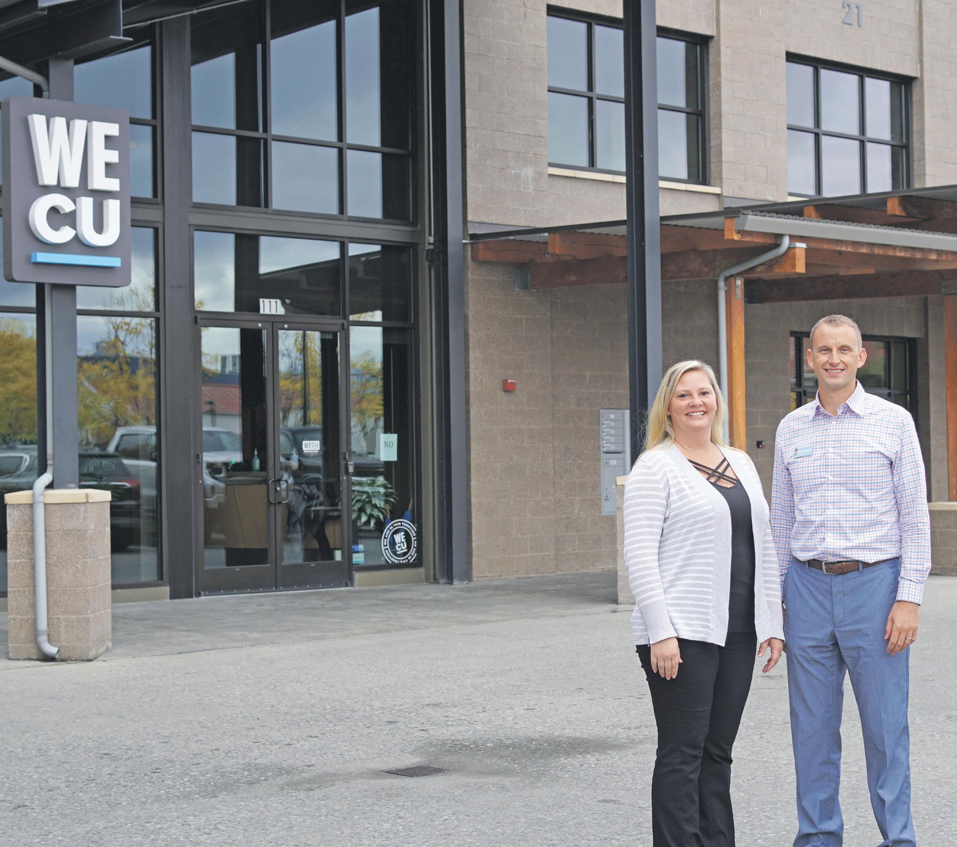 At left, Lynden Branch Manager Alisha Lockwood poses outside of the Lynden WECU building. The first Lynden location was located in Delft Square until a fire in 2008. (Racquel Muncy/Lynden Tribune)