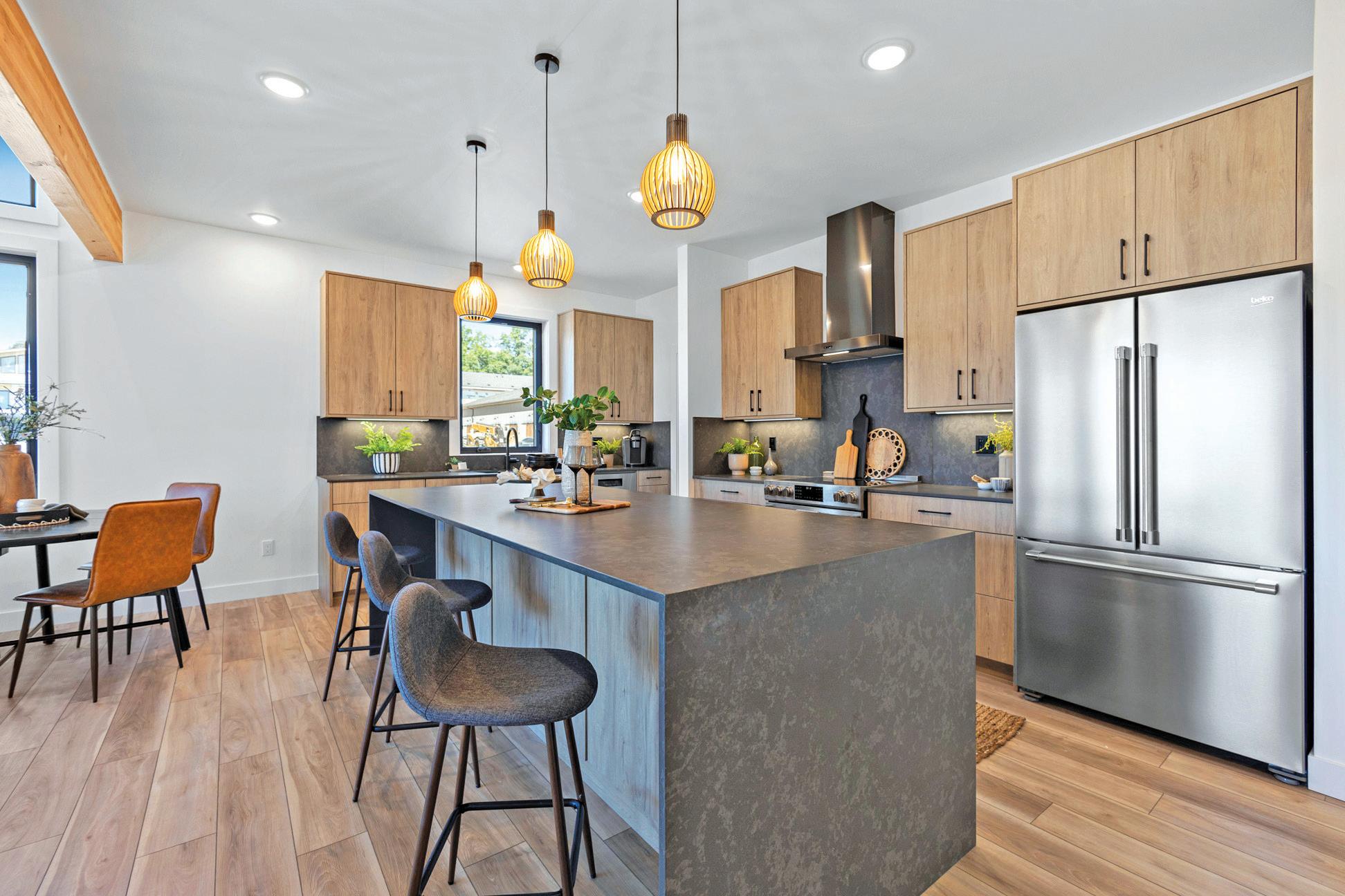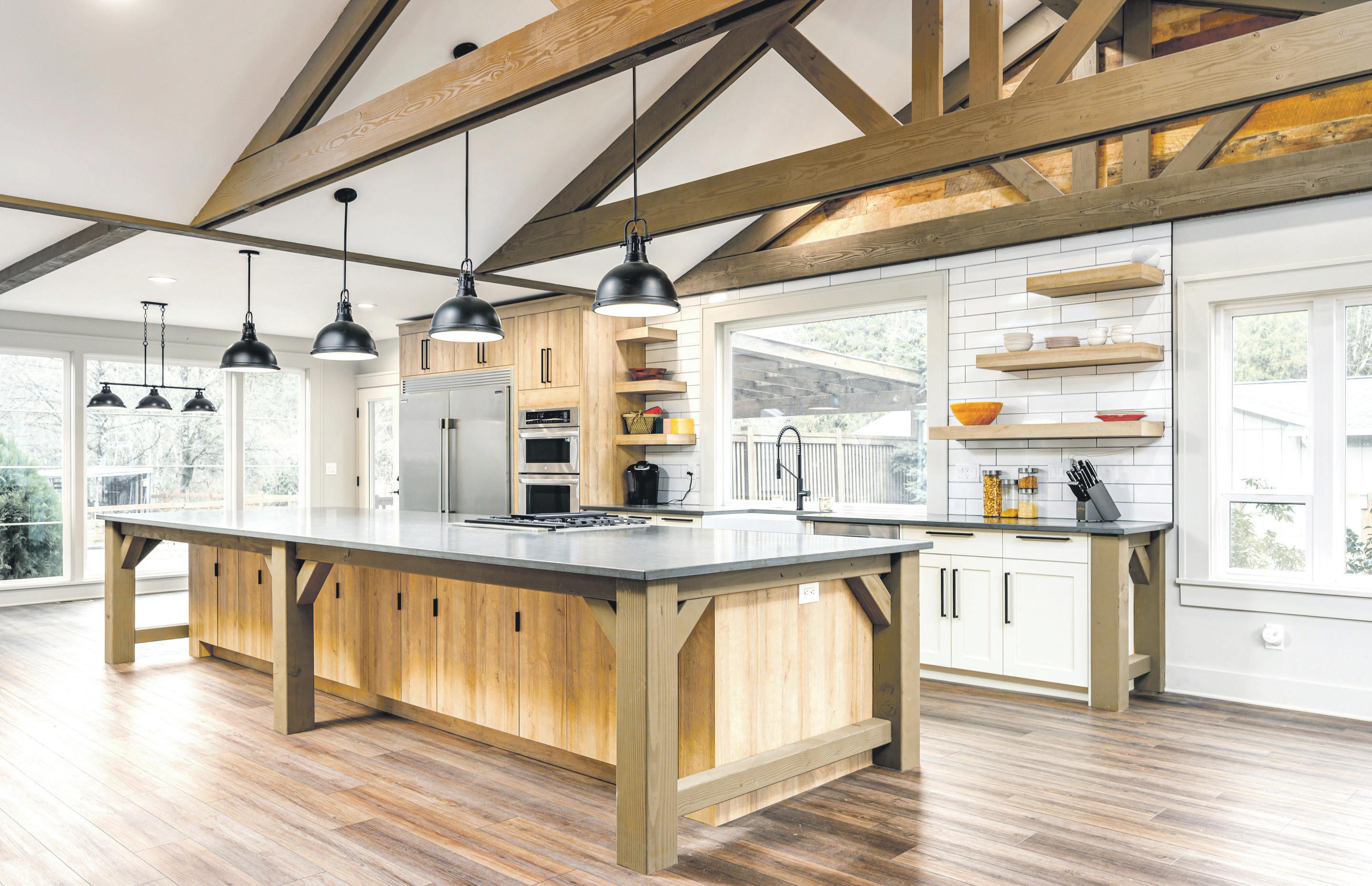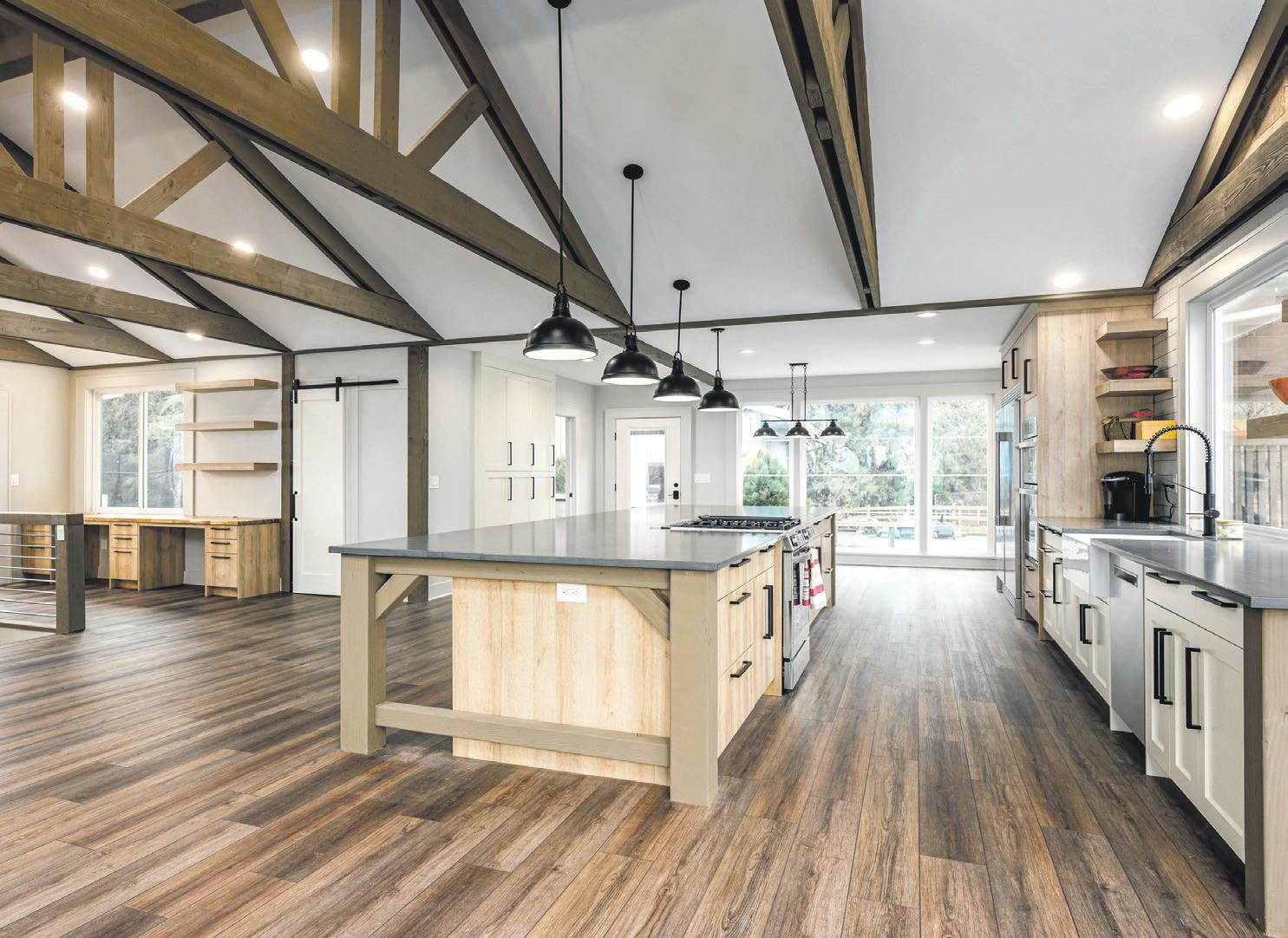 Owner of CLT Design/Build, Craig Telgenhoff had the idea for a 16-foot island countertop in the kitchen, pictured above, to create a space for the family to gather around while Emily cooks. Pictured on the next page are various glimpses of the completed full remodel of the family's Lynden home. (Photo courtesy CLT Design/Build)