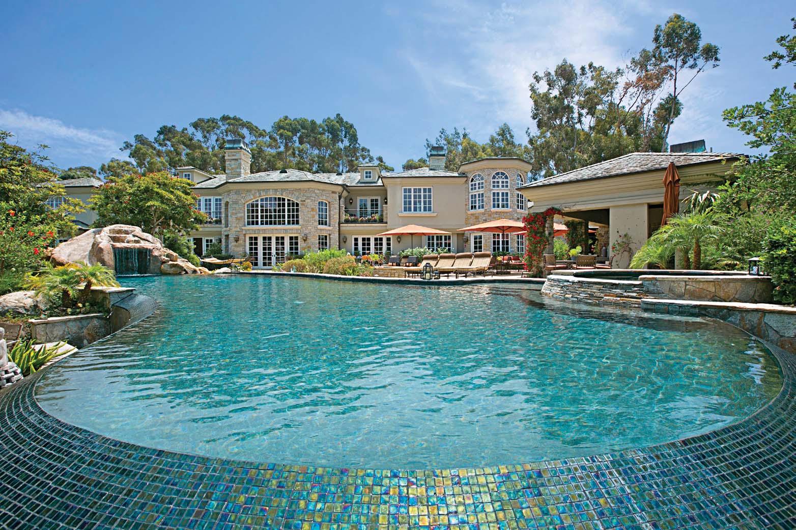 and walls of French doors add to the ideal and seamless indoor/outdoor living. The 5 en-suite bedroom home doesn’t miss anything on design, finish quality and amenities. The ocean view back yard is an entertainers dream with full outdoor kitchen complete with pizza oven, oversized pool & spa, fire pit, raised bed gardens, dog run, grass area and plenty of space. For indoor fun you will enjoy the professional media room, extra bonus room in addition to the large and gracious gourmet kitchen that opens to both the family room and living room. The home has hidden security cameras, detached guest home, full music throughout and set up for an elevator. This property is truly the American Dream and its beauty and quality make it timeless VRM $7,995,000 - $10,994,876