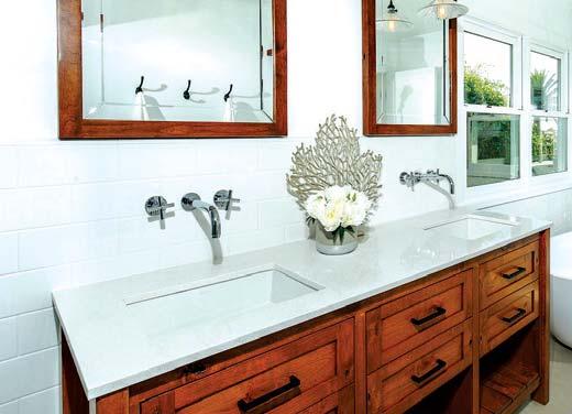A furniture style vanity in the bathroom brings character to, let’s face it, an often times characterless room. Sideboards, dressers, even a beautiful antique desk can be used to create custom cabinetry that is totally functional like they did in this coastal farmhouse.