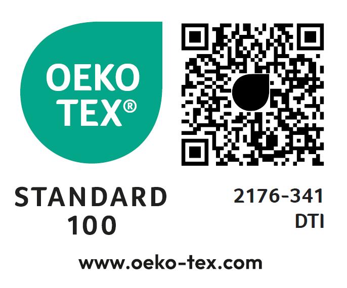 • STANDARD 100 by OEKO-TEX® sikrer, at produkterne bl.a overholder kravene i EU’s REACH-lovgivning og dækker en stor del af SVHC-stofferne.