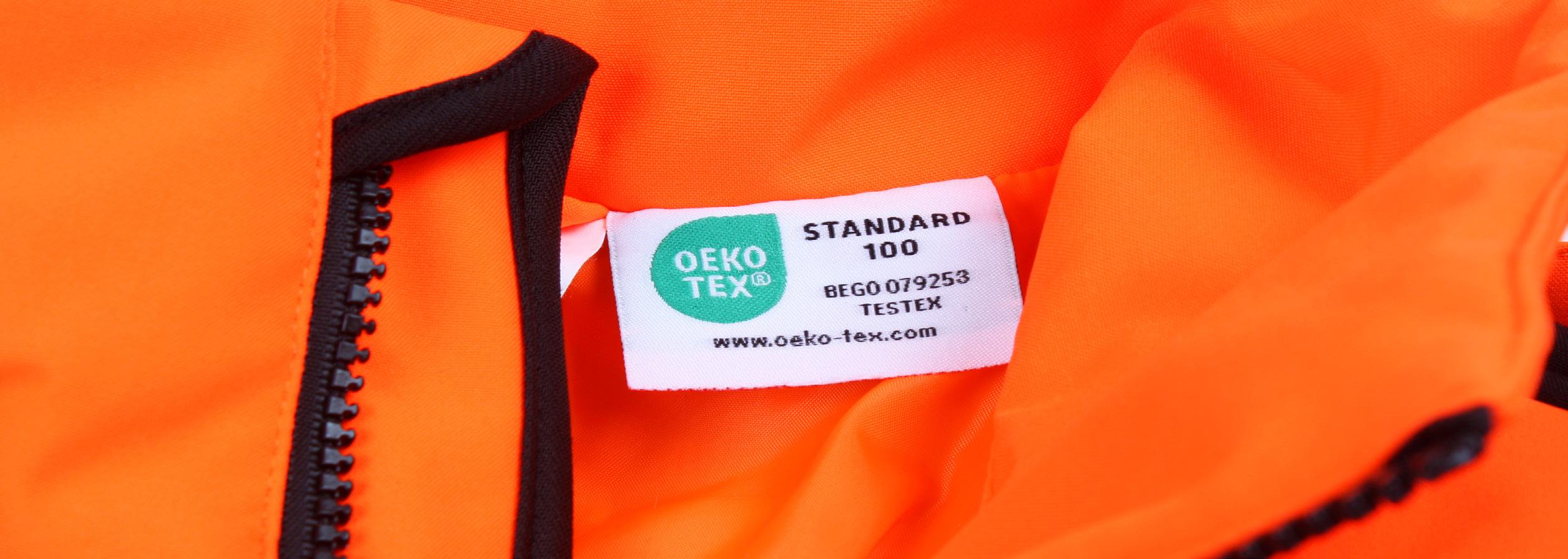 • STANDARD 100 by OEKO-TEX® markins shows that the entire product/garment has been tested and approved on the basis of