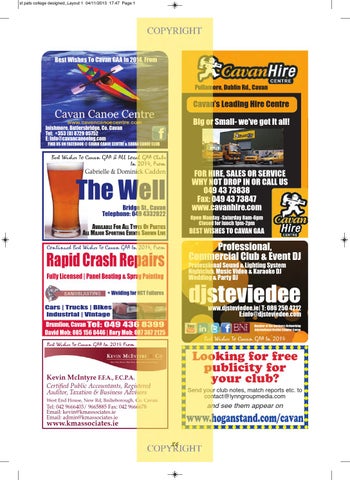 Best Wishes To Cavan GAA In 2014, From Pullamore, Dublin Rd., Cavan
