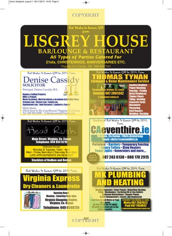 Main Street, (Next door to the Courthouse) Virginia, Co.Cavan Tel: 049 854 8398 | E:denisecassidy@mail.com