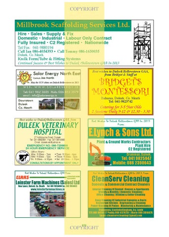 Kwik Form/Tube & Fitting Systems Continued Success & Best Wishes to Duleek /Bellewstown GAA In 2013 Best wishes to Duleek/Bellewstown GAA, from Bridget & Staff at