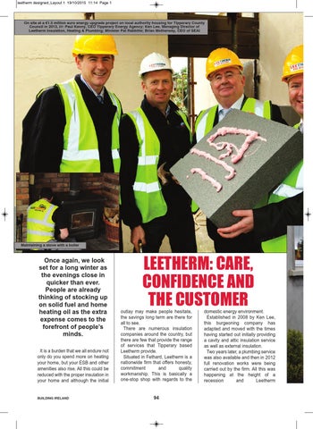outlay may make people hesitate, the savings long term are there for all to see. There are numerous insulation companies around the country, but there are few that provide the range of services that Tipperary based Leetherm provide. Situated in Fethard, Leetherm is a nationwide firm that offers honesty, commitment and quality workmanship. This is basically a one-stop shop with regards to the 94