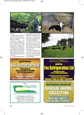 been installed to cater for the increase in the milk quota and Lawrence is happy with the way business is going despite the obvious drawbacks. “It will be very hard to expand any further as I said, but you never know down the line. We just keep working away and there is not much else you can do.” Lawrence is supported on the farm by his wife Louise and his two children Jack (9) and Aimee (7) as well as his mother Margaret.