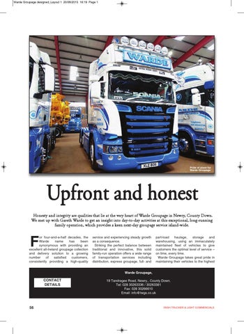 Upfront and honest Honesty and integrity are qualities that lie at the very heart of Warde Groupage in Newry, County Down. We met up with Gareth Warde to get an insight into day-to-day activities at this exceptional, long-running family operation, which provides a keen next-day groupage service island-wide.