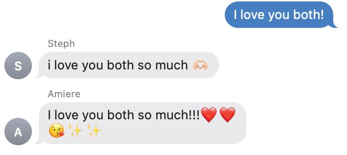 Hi Hi! I love having conversations with my best friends Amiere and Steph. We talk in person, on text, and sometimes on the phone. They make my day so much better!