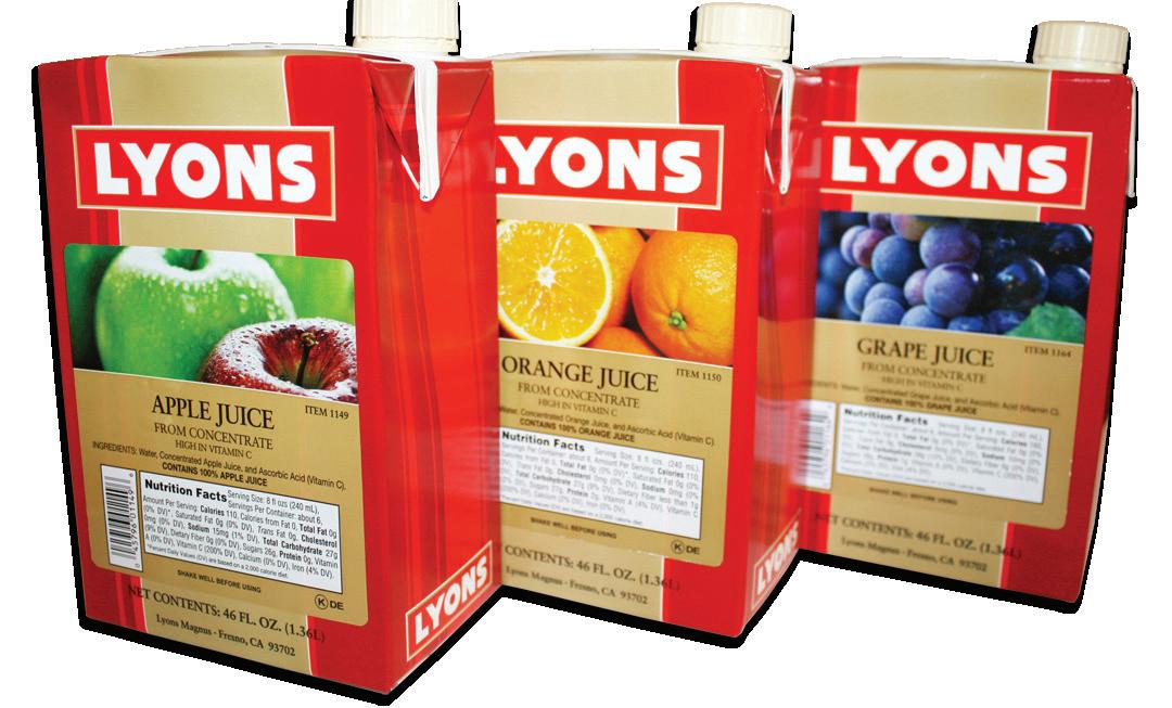 Lyons knows fruit and fruit juices. Our ready-to-serve juices give your operation the shelf-stable convenience you need, along with the fresh, “just picked” flavor your customers demand.