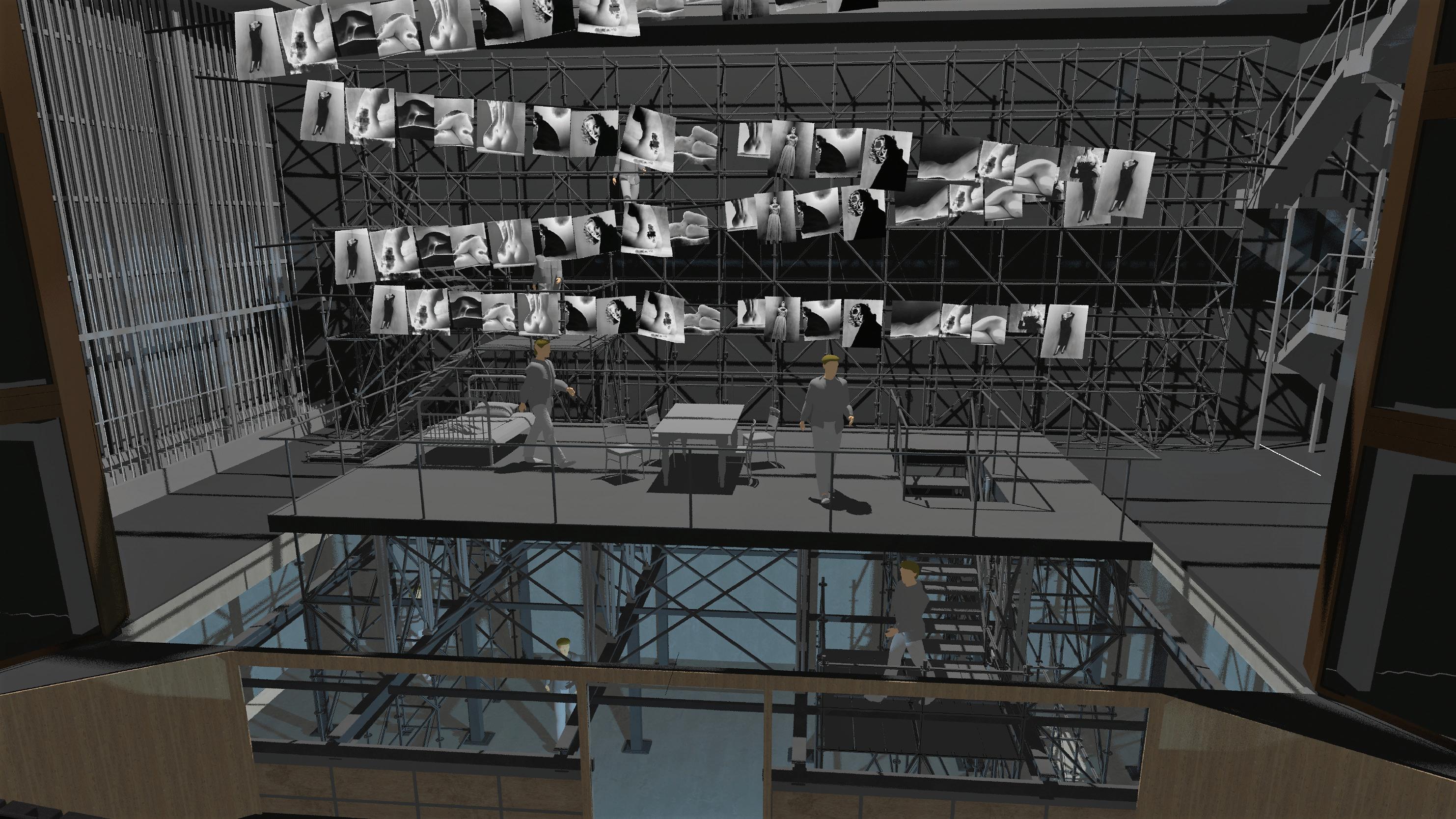 Rather than attempt to re-create any kind of ‘scenic’ version of a bombedout Berlin in 1949, we decided to focus on the fragility and vulnerability of the situation our protagonists find themselves in. In their own way, each character is physically and emotionally stranded. Hannah and Slavi’s apartment, probably situated somewhere in the middle of a ruined apartment block, becomes an isolated island; ‘floating’ within the fully exposed architecture of the Lyric stage. To increase this sense of desolation further, we have opened up the substage and connected the bare bones of the theatre with stairs and walkways to facilitate scenes which can shift between the intimate and the epic in an instant. We invite the audience into an immersive experience.