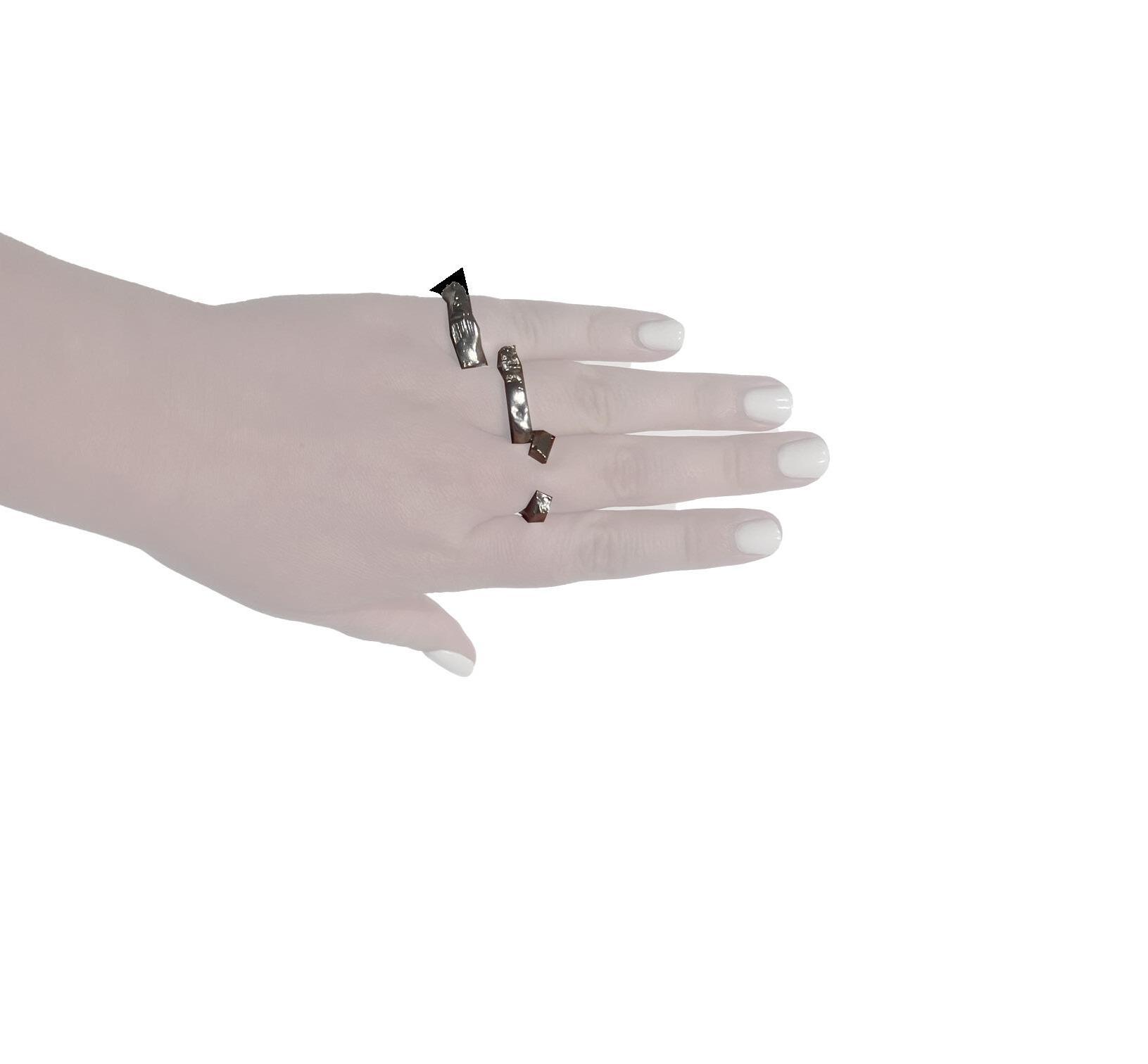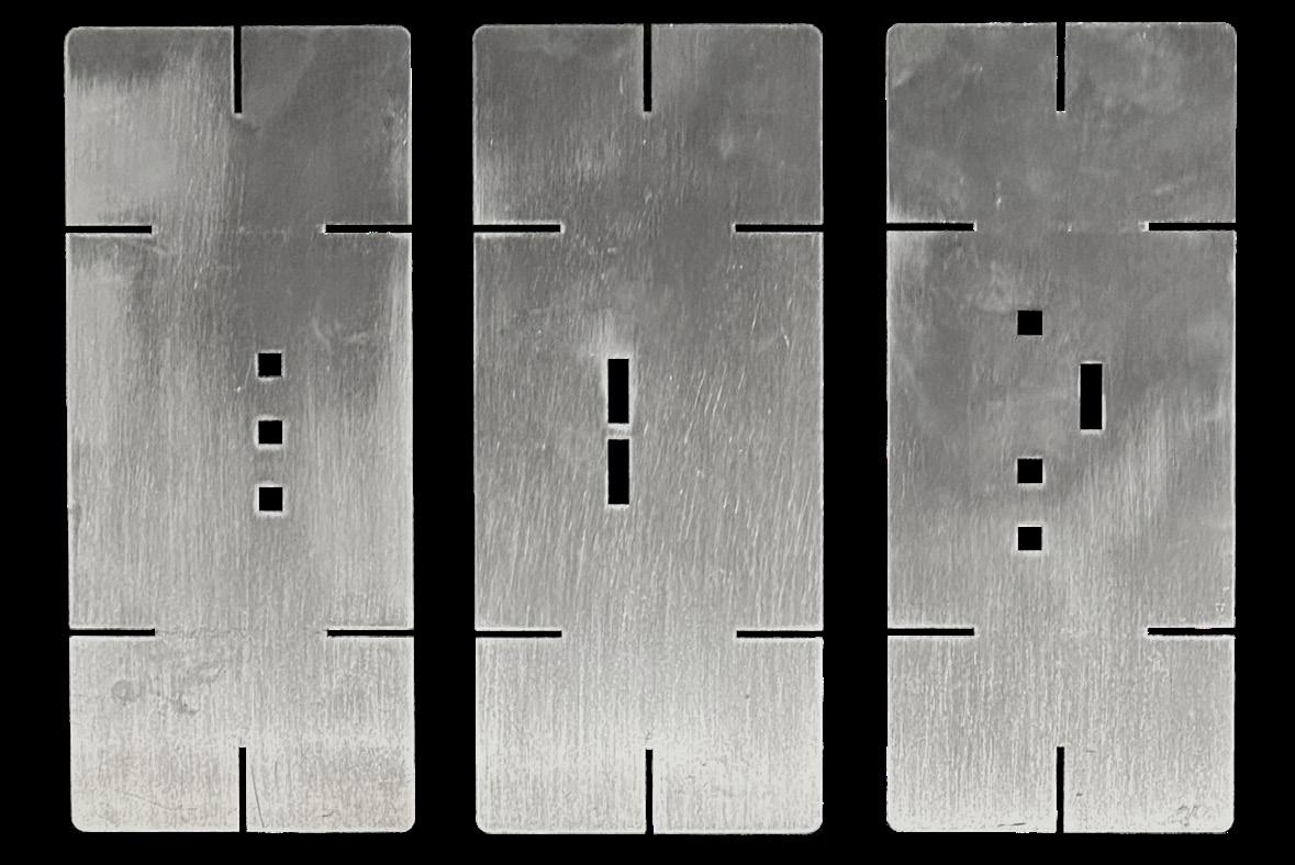 Alongside professional practice, I maintain ongoing material investigations through silversmithing, exploring lost-wax casting techniques at jewellery scale. Small aluminium installation cards extend this interest in metal fabrication and surface treatment.