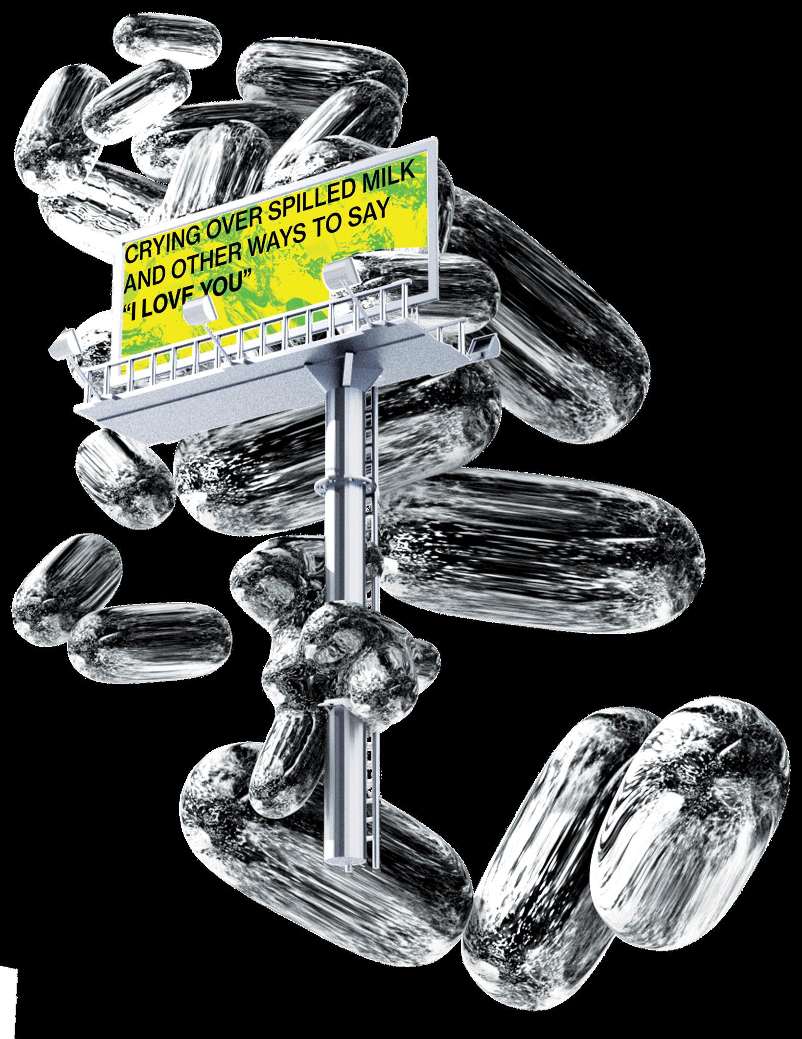 Billboards are architectures of desire: immense resources devoted to physically constructing culture. If we are expected to crave what this infrastructure displays, might we re-appropriate this space? Can we covet closeness to the “invisible” infrastructures supporting our wellbeing?