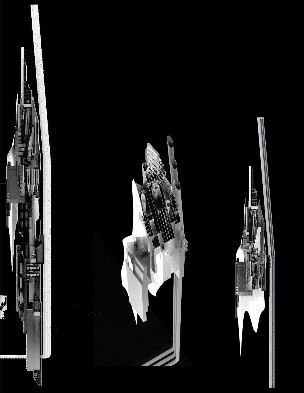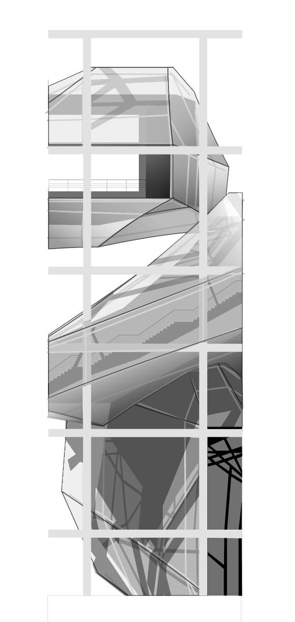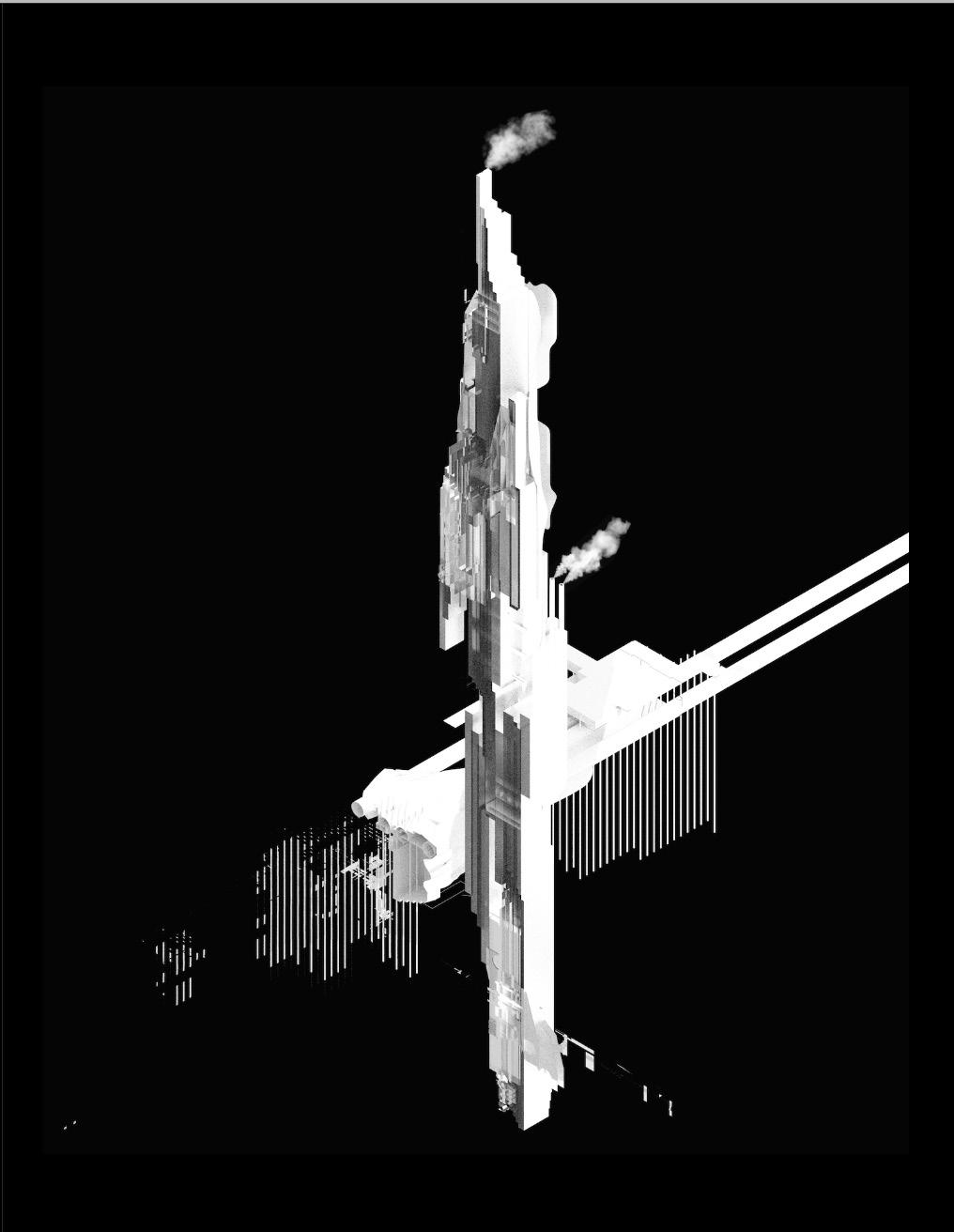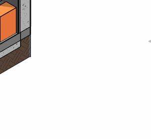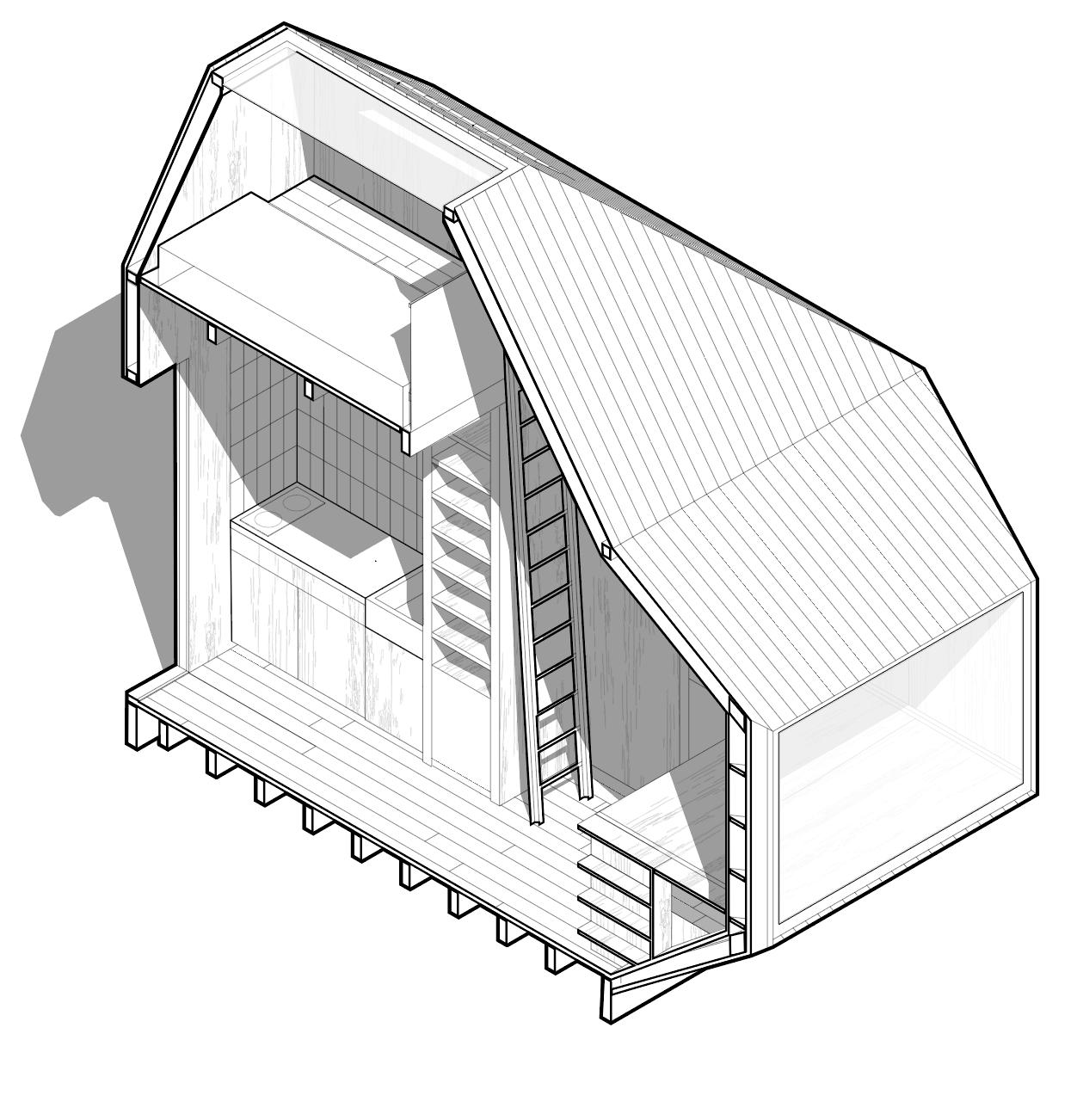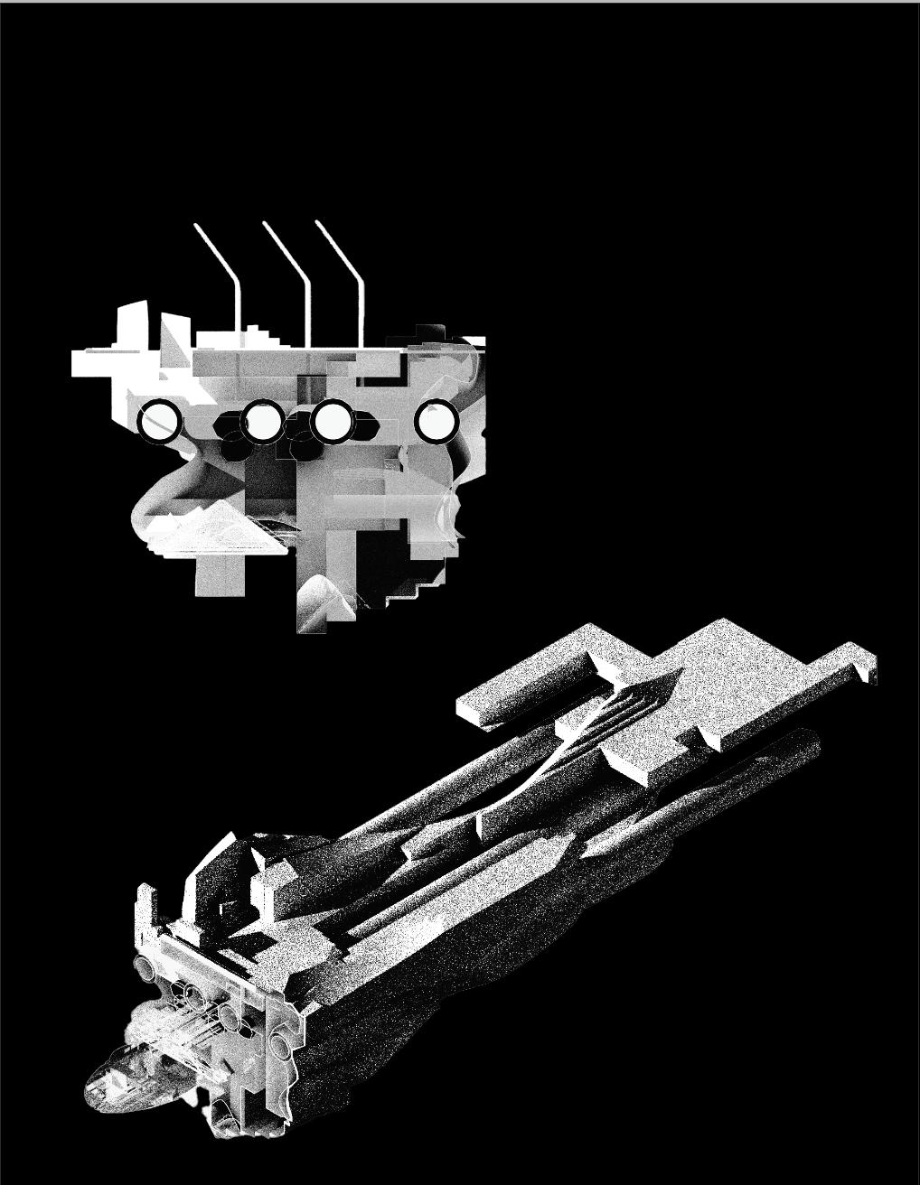 Mechanical Sweetness draws inspiration from surrounding industrial buildings, subverting practicality to create playful yet sustainable spaces. Slides twist around the structure, emulating mechanical systems while providing rapid descent. This logic extends to individual dorm units where efciency becomes inventive: kitchen and bathroom share a sink, desks fold to become sun shades. Function remains integral but multiplies through imaginative deployment, where single elements serve multiple purposes and circulation becomes play.