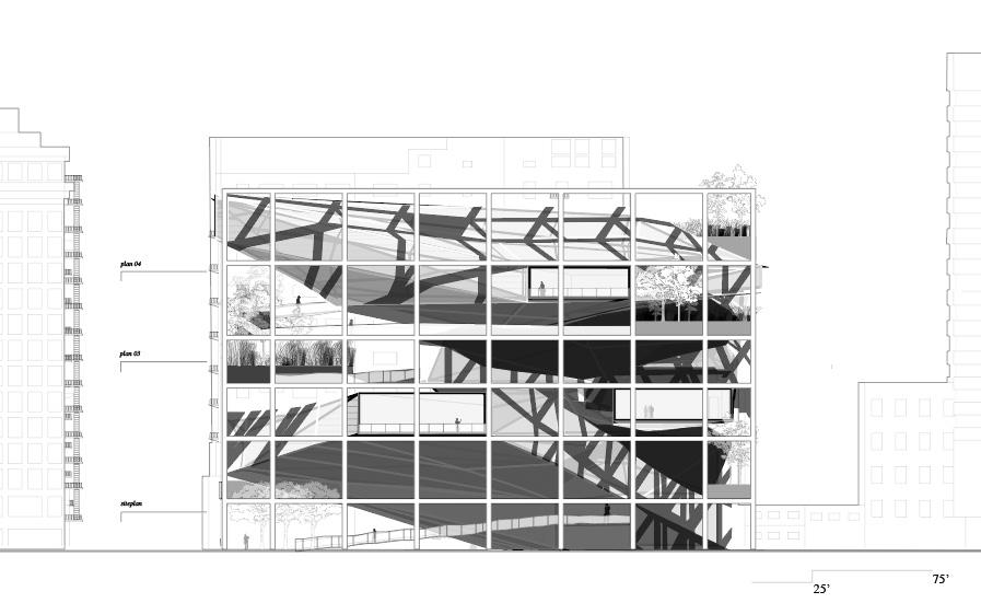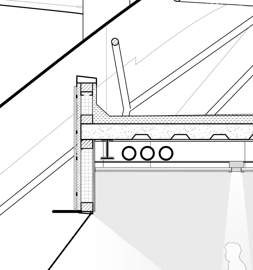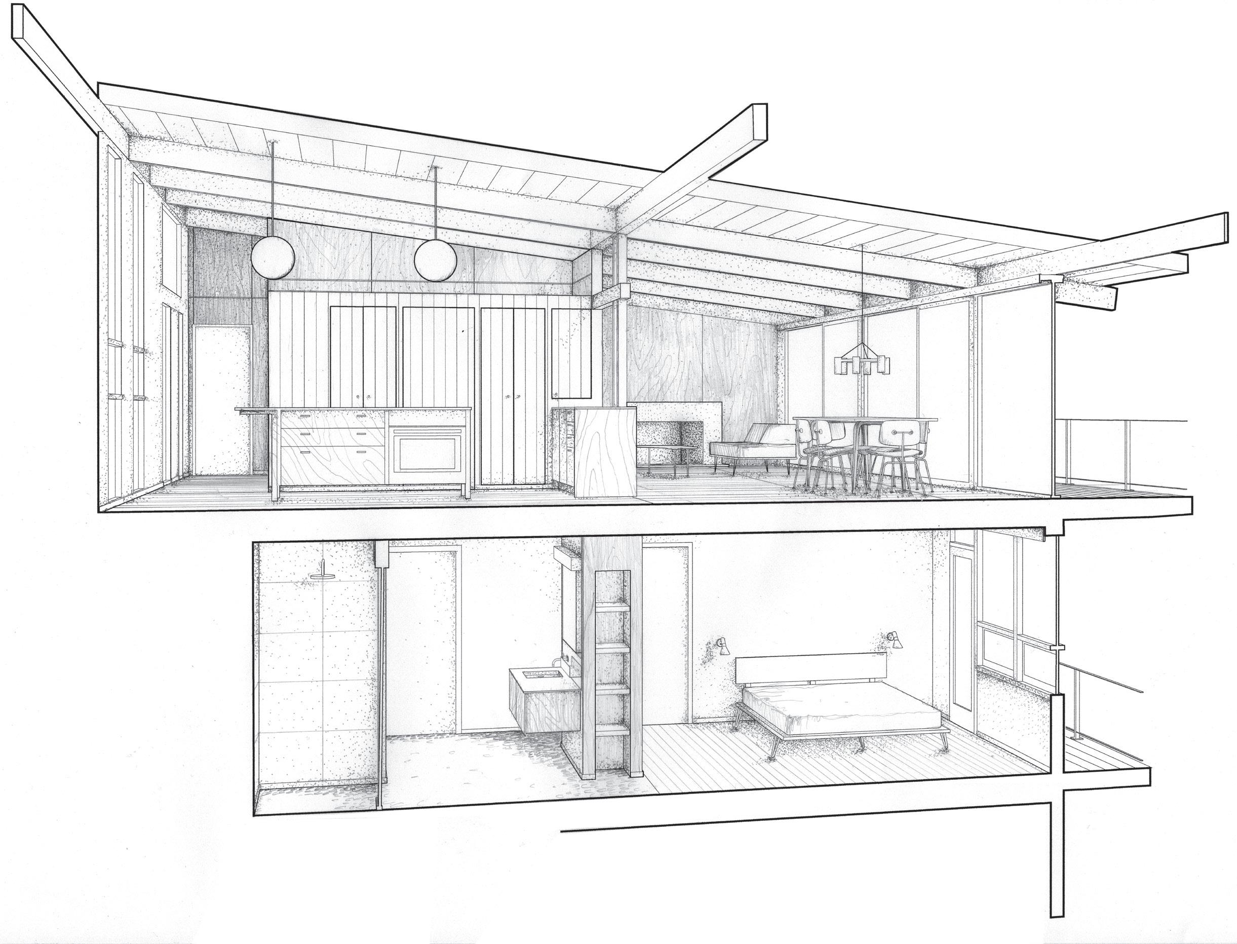 Completed during my Intership at Framestudio For this drawing, I used the existing Revit model as a source to draft the 2D drawing. I then used Illustrator for presentation linework and pencil for the shading and textures.