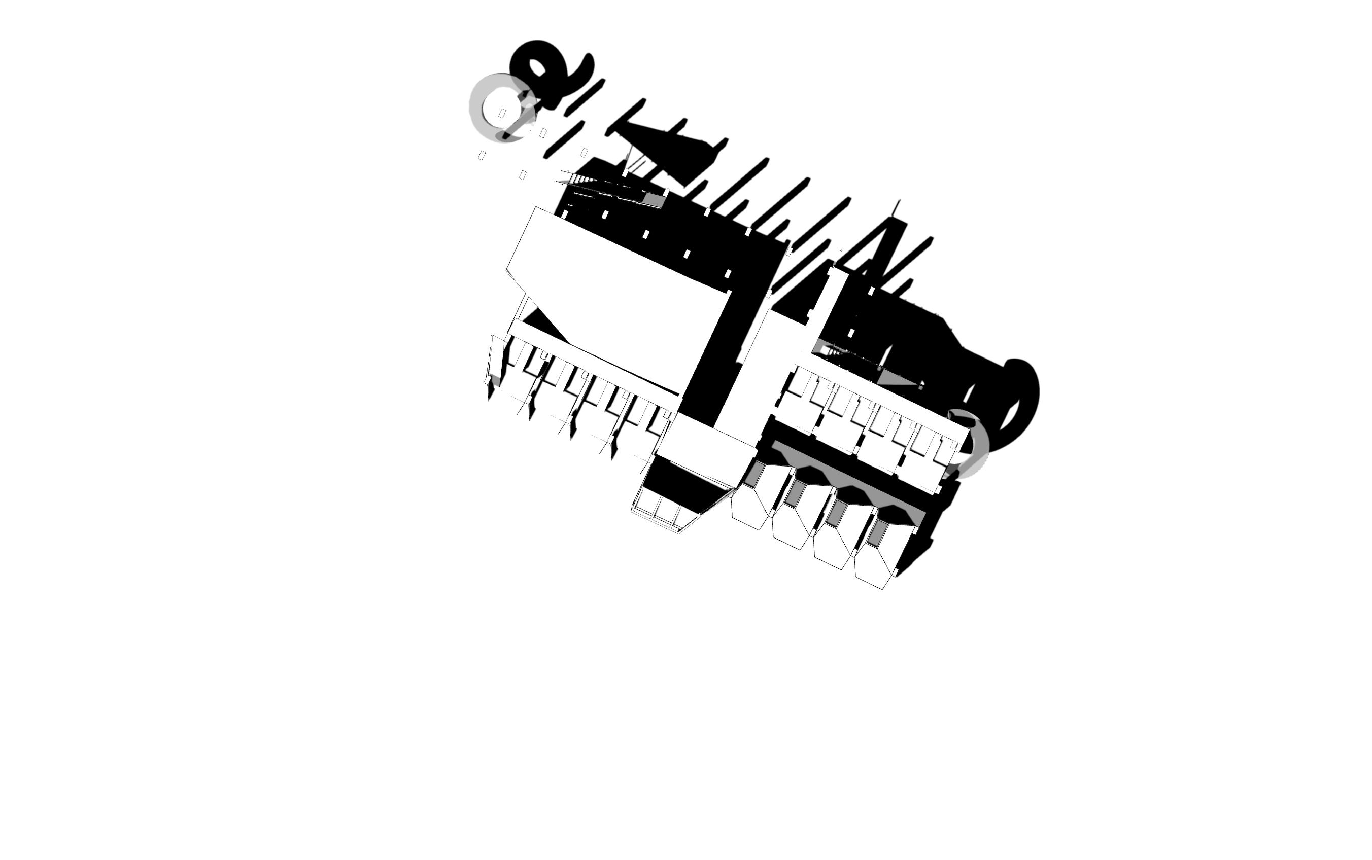 For this drawing, I created the 3D model from the 2D AutoCAD set. Using the model, I developed a perspective drawing, which I then shaded by hand with pencil.