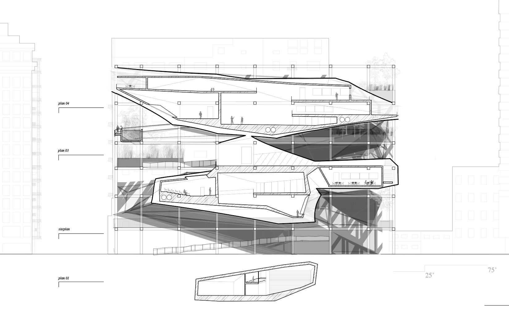 Tasked with an open-ended library in downtown LA, I examined what it means to share knowledge, returning to the most primal form of culture building: storytelling. Divided into four methods of engagement (listening, watching, collecting, and tasting), Lost and Found becomes a physical space for the forgotten and overlooked. I proposed that community fabric could become not only more inclusive but more tightly knit through designed interaction. The building derives from unencumbered collection, leading me to explore material collage as both narrative device and conceptual framework. The resulting form remains intentionally plastic, designed to change and grow over time as the community it serves evolves.