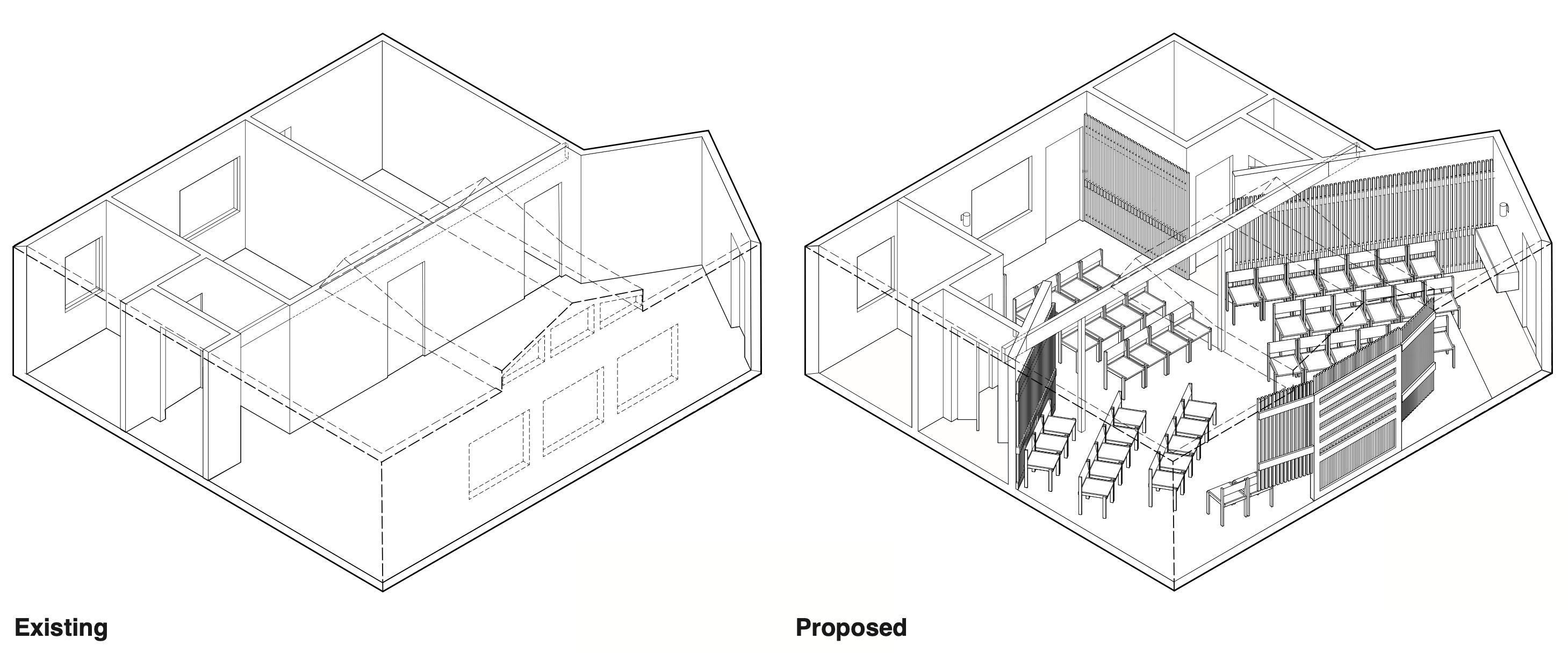 Existing and proposed Isometrics produced for a community church renovation in Northern California. Working from CAD drawings, I developed a Rhino model and produced presentation materials.