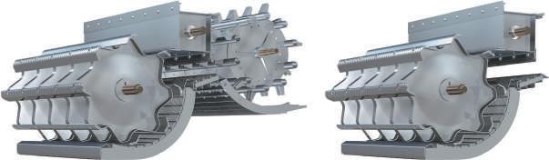 Naujos konstrukcijos nuožulniojo transporterio korpusas dabar yra ilgesnis ir tvirtesnis, su platesne anga ir didesne keliamąja galia bei sustiprintu šoninio posvyrio mechanizmu, kad būtų galima naudoti iki 2 tonų sveriančias pjaunamasias.
