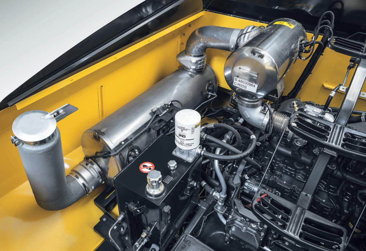 Linijinės aušinimo sistemos ventiliatorius sumontuotas tarp rotacinio dulkių filtro ir radiatoriaus. Savaime išsivalantis filtras pašalina pelus ir stambias daleles prieš galingam septynių menčių ventiliatoriui pučiant orą per radiatorių. Tokia sistema padeda išvengti radiatoriaus užsikimšimo, taip pat palaiko švarą variklio skyriuje ir užtikrina optimalų aušinimą bet kokiomis sąlygomis.
