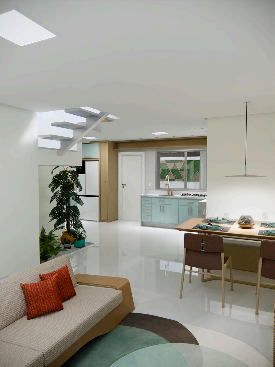 Oprojetofoipensadoparaquea família se sinta confortável e conectada aos ambientes. Um lugarquecontempleoperfildos clientes e compreenda outras necessidades; como conforto, iluminação e ventilação da casa. Além disso, foi utilizado influências do retrô para construção do estilo, mesmo a casasendocontemporânea.