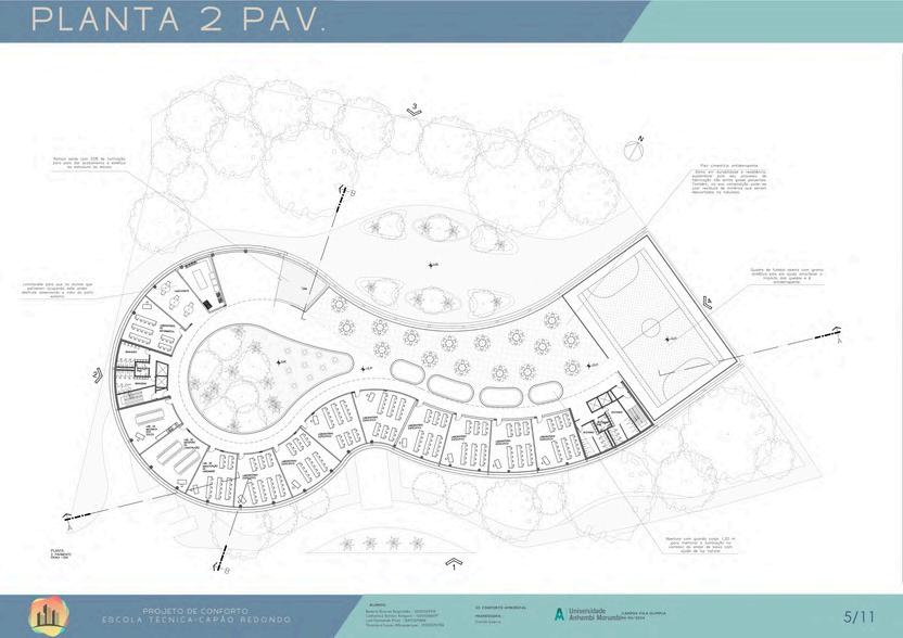 Esseprojetodeescolatécnica promoveeducaçãoe convivênciaconfortáveis, comfocoemestudos profissionalizantesem regiõescarentes.Sua arquiteturacircularintegra espaçosdeconvivênciae salasdeaula,priorizandoo confortoeasustentabilidade.