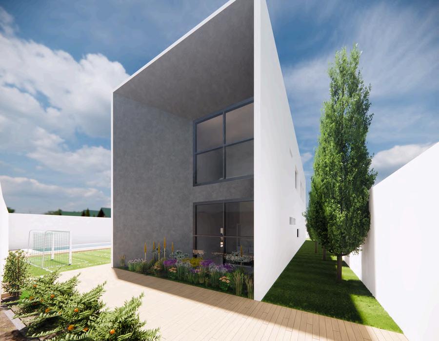 A Casa Nova da Família Varandas é um projeto que contempla os perfis dos clientes, possibilitando a convivência de práticas artísticas, garagem ampla, para hobby de mecânica, uma horta, campo de futebol, acessibilidade para os pais da proprietária e espaço externo paraconfraternizações.