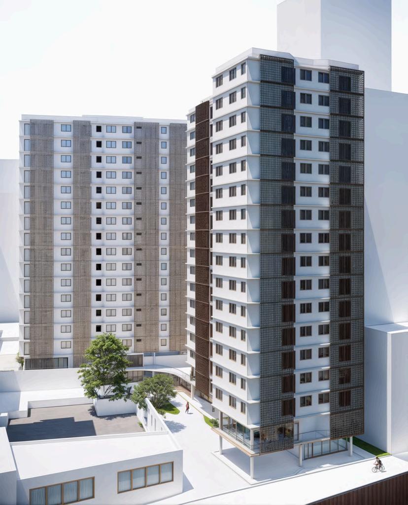 Umnovoprojetoresidencial redefineahabitaçãosocial, priorizandooconfortoea interaçãocomunitária. Ofereceapartamentosbem dimensionadoseespaçosde convivência,comosalasde jogosecoworking.Varandas combrisesdemadeira garantemconfortotérmicoe ventilaçãonatural, desafiandoconceitos tradicionais