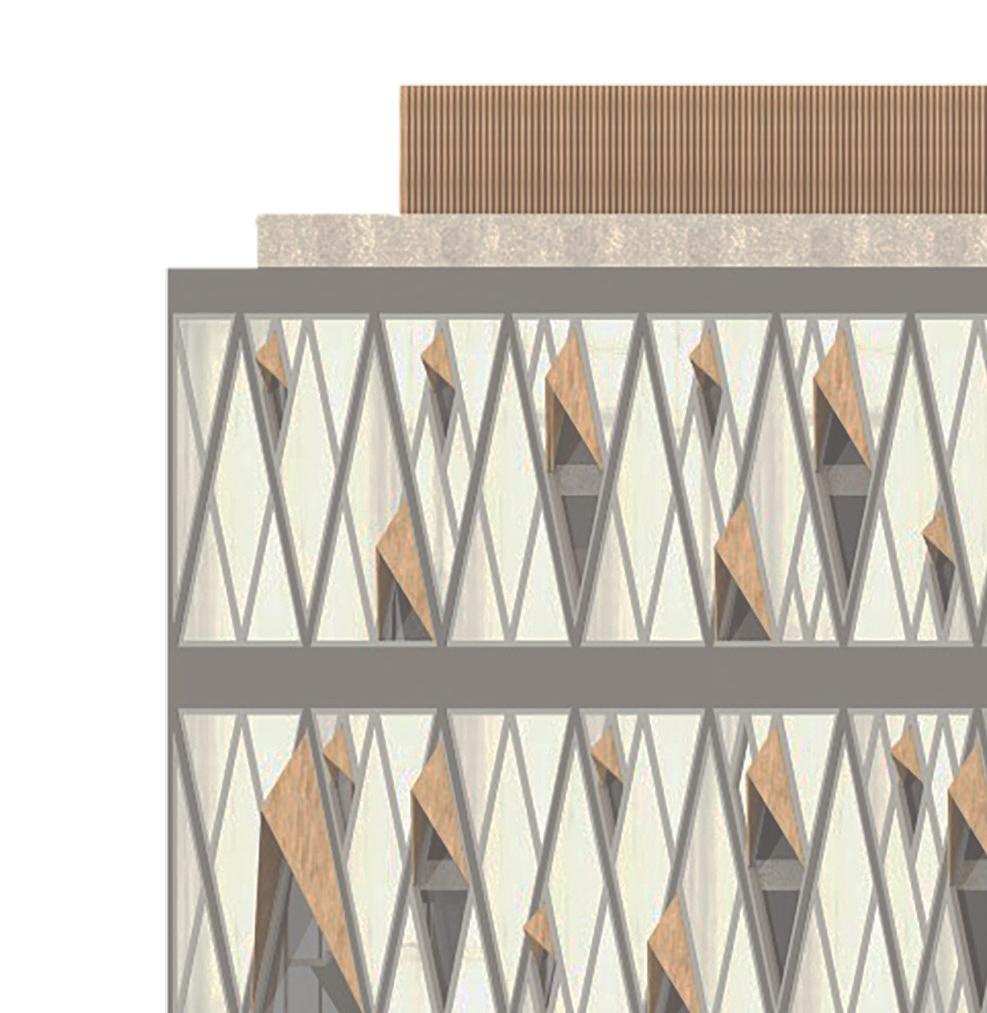 Integrated design is essential for creating successful, long-lasting, and efficient buildings. Architects must seamlessly incorporate structural elements, building envelopes, and both passive and active systems. The design should also anticipate future scenarios, ensuring flexibility and adaptability. In response to projected flooding in Boston, this project adopts an urban landscaping approach to mitigate these challenges. The passive and active systems integrated into both the structure and the landscape effectively address the issues identified during the research process.The building’s structure should be visually prominent, with materials that remain true to their nature. The diamond-shaped curtain wall is inspired by the geometry of the structural trusses, showcasing their form. Furthermore, buildings must promote thermal comfort, creating a flexible microclimate that caters to the preferences of its users.