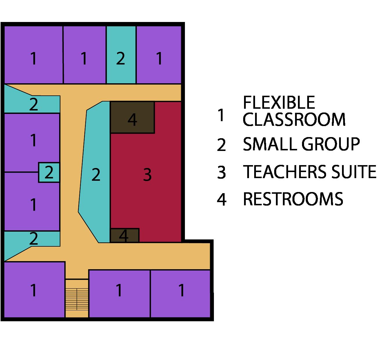 Looking at the floor plan the building shows classrooms, breakout spaces, as well as small group spaces, which allow for various teaching styles, and provides opportunity for more student-centric learning.