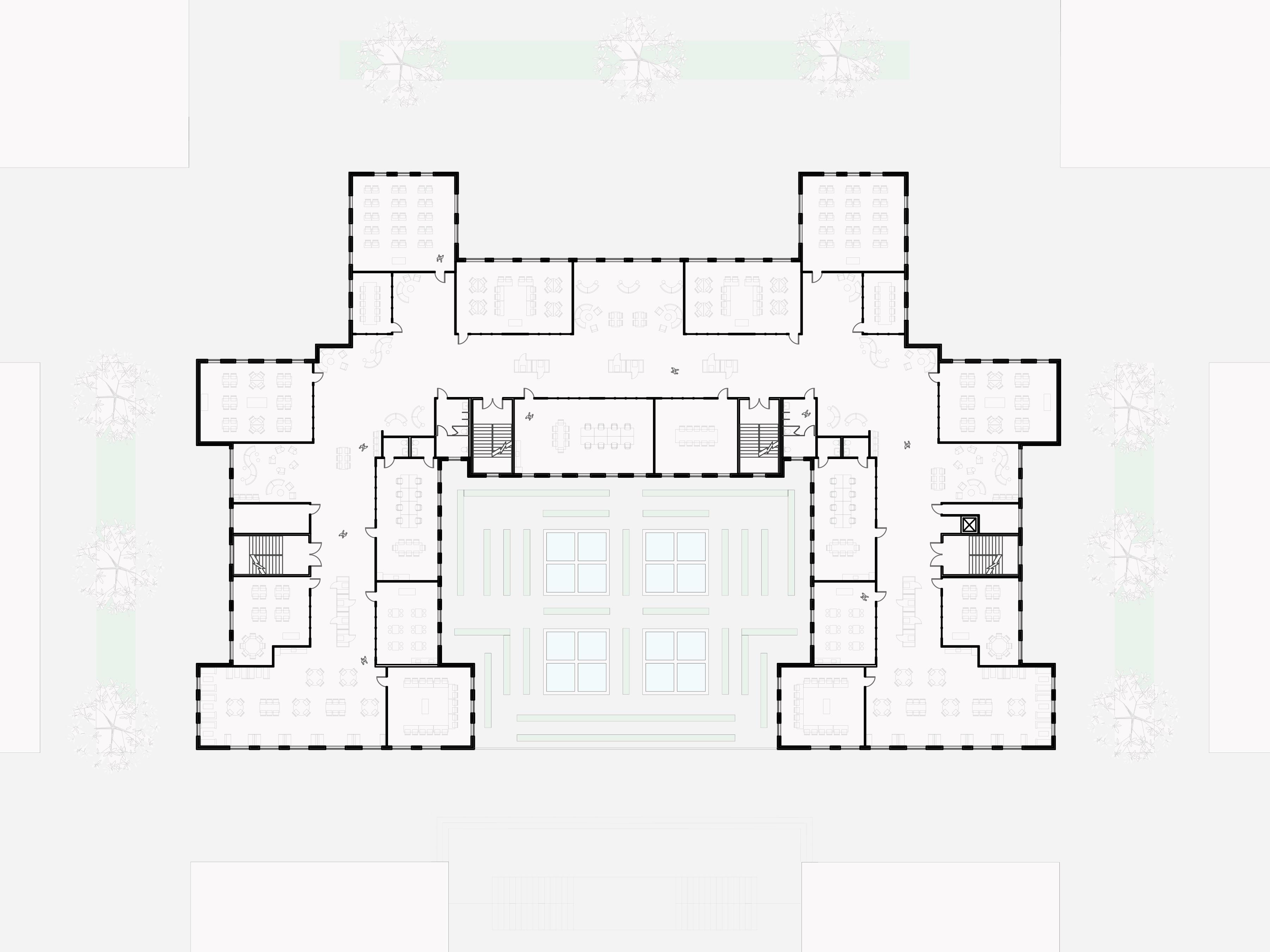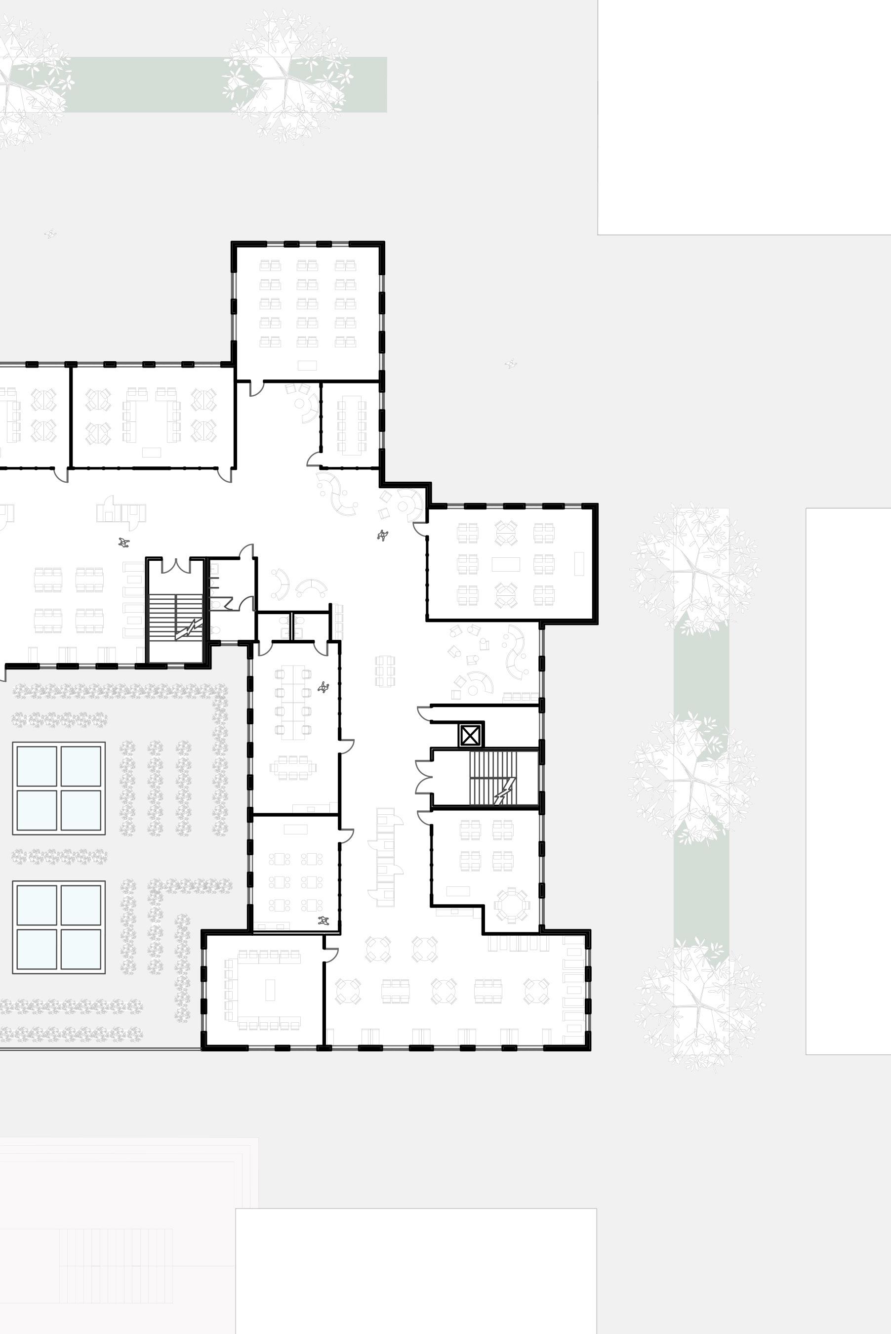 This layout provides pedagogical freedom as classrooms are not restricted to the bounds of the exterior walls of the core studio spaces. Occupants are then free to push these bounds and expand their learning opportunities, giving agency back to the students and teachers.