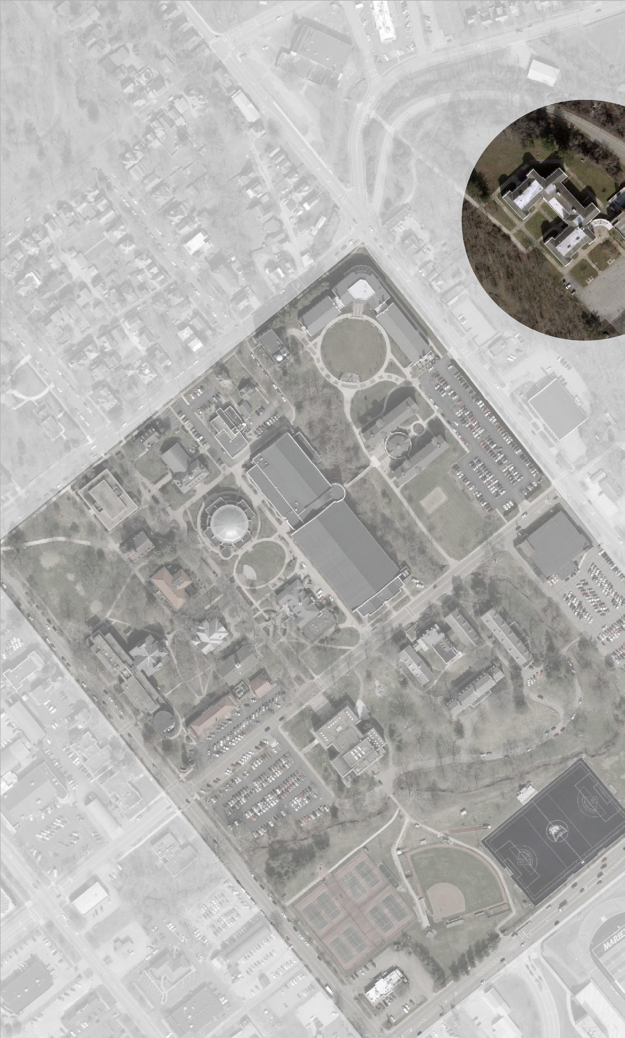 The proposed layout looks to retain the existing building originally constructed in 1912 as a starting point for the design. By using the building as a starting point a grid can be developed and the locations for additional buildings can be determined. The program for these buildings will be based on cultural needs of the area and as such, a greenhouse, an auto-shop and a second gymnasium suppliment the main learning spaces. Additionally, for the community’s use 2 mixed use buildings as well as a auditorium are set near the street for easy access.