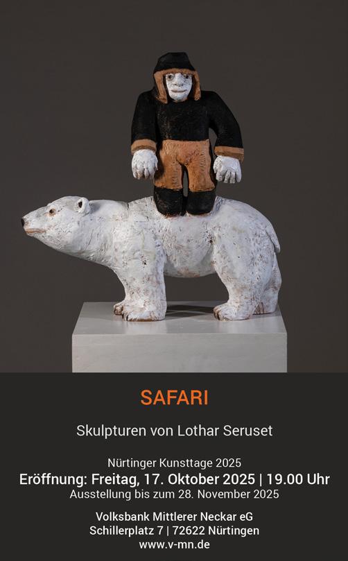 Zeillerstr. 3, 82031 Grünwald bei München, Tel. 089-6413218 www.archaeologie.bayern, Di-So 10-17 Uhr 2025 finden auf Burg Grünwald keine Sonderausstellungen statt. Hauzenberg Kunstprojekte Sigrun C. M. Leyerseder Grubweg 3, 94051 Hauzenberg, Tel. 08586-979805, info@kunstleyerseder.de www.kunstleyerseder.de, Termin nach Vereinbarung, auch abends und am Wochenende Tiere, 5.9.-Dezember 25, Eröffnung: Fr 5.9.25, 19 Uhr Herrsching Kulturverein Herrsching e.V. Scheuermannstr. 3, 82211 Herrsching am Ammersee, Tel. 0151-64956681 1. Vorsitzender Dr. Heinz Hellerer, www.kulturverein-herrsching.de Fr 3.10.25 11-21 Uhr, Sa 4.10. & So 5.10.25 11-17 Uhr 10. Kunstrausch Herrsching 2025, 3.-5.10.25, Eröffnung: Do 2.10.25, 19 Uhr Kunstspaziergang: Sa 4.10. & So 5.10.25, jeweils 15 Uhr, Treffpunkt Kurparkschlösschen Von Fr, 3.10. bis So, 5.10.2025 findet in Herrsching a. Ammersee der 10. Kunstrausch statt. Zum Jubiläum laden Kunstschaufenster in Geschäften und Gastronomie sowie ein Skulpturenfeld vor dem Rathaus zum Kunstbummel in der Gemeinde ein. Die Offenen Ateliers stellen eine wunderbare Möglichkeit dar, Einblicke in die Arbeitsweisen und unterschiedlichen Techniken der Kunstschaffenden in der Region zu bekommen und gleichzeitig die schöne Ammerseeumgebung von Breitbrunn über Herrsching bis auf den Heiligen Berg nach Andechs hinauf kennenzulernen. Zur Eröffnung der Gemeinschaftsausstellung im Kurparkschlösschen lädt der Kulturverein Herrsching am Do, 2.10. um 19 Uhr ein. Die Schau im Schlösschen präsentiert Werke von 30 regionalen Künstler*innen auf 3 Etagen. Am Fr, 3.10. findet ab 16 Uhr bis in die Abendstunden das Kunstrausch Open Air Konzert für Jugendliche und junge Erwachsene mit Wetbrick, Bunte Raben, Popcorn Molecule und Braincha vor dem Kurparkschlösschen statt.