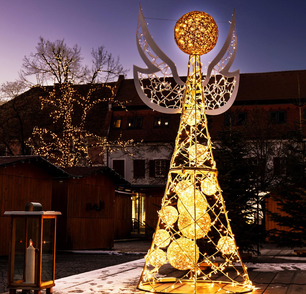 Von der Einfahrt in die Altstadt beim Grazer Tor mit dem Rathaus und dem Gebäudeensemble am Augustinerplatz über den Hauptplatz bis zum Stadt-Zug-Platz bereiten stimmungsvolle Lichter arrangements und stilvoll beleuchtete Christbäume viele zauberhafte Momente. Der wunderschöne, vier Meter hohe Lichterengel mitten auf dem Hauptplatz der Thermenhauptstadt an der Mariensäule ist die Einladung par excellence für ein strahlendes Selfie und ein einmaliges Erinnerungsfoto an die Lich ter- und Weihnachtsstadt Fürstenfeld. Romantische Feuerstellen am Weihnachtsmarkt wärmen Herz und Seele obendrein!