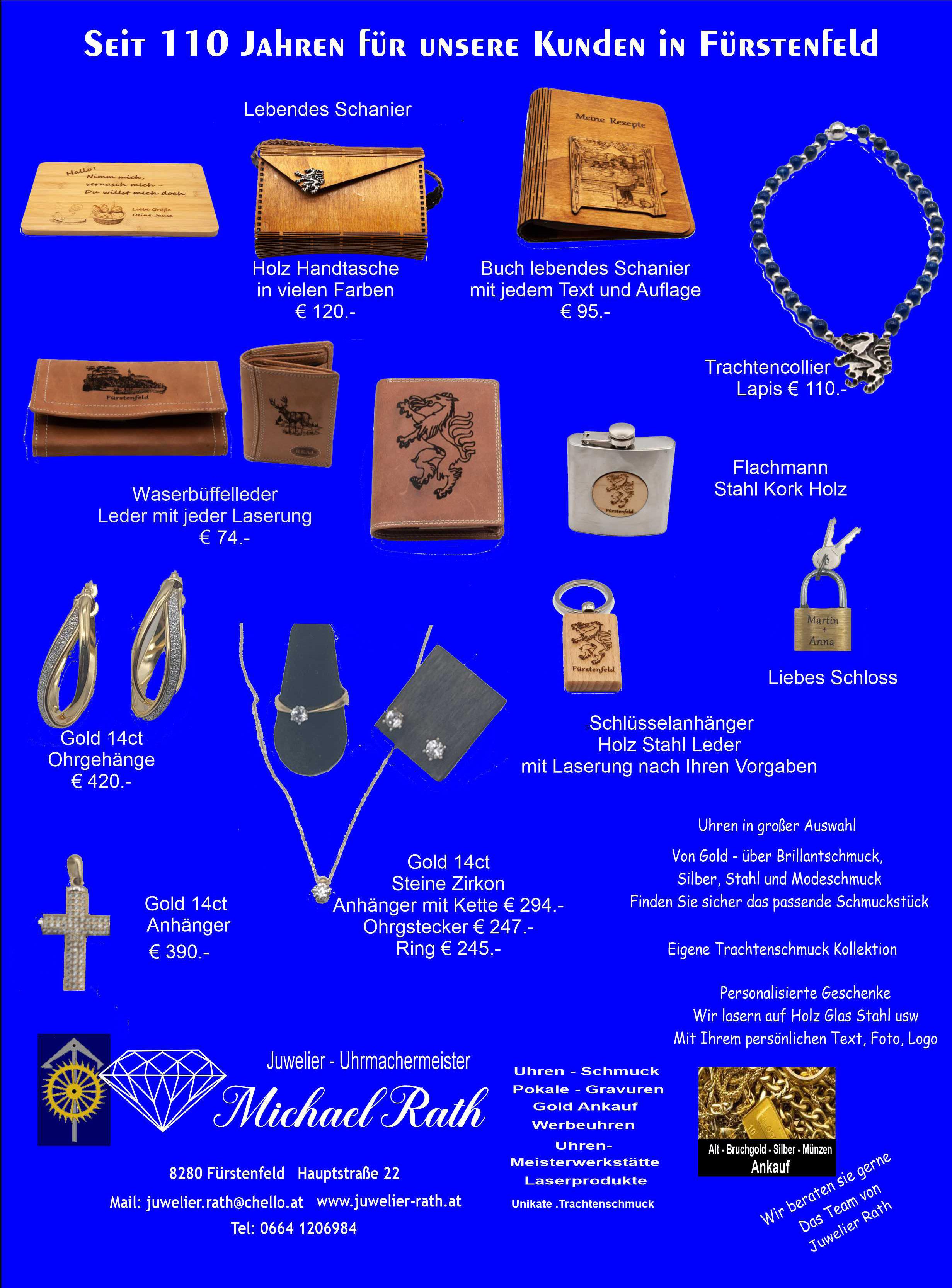 Sie suchen nach dem passenden Geschenk für Ihre Liebsten? Fürstenfelder Geschäfte bieten Ihnen eine große Aus wahl und Vielfalt bei allem, was Freude bereitet – von der Wintermode bis zum Lieblingsbuch, von liebevoll gefertig ter Dekoration und edlem Schmuck bis zu Geschenken für den Genuss, von Praktischem bis zur modernsten Technik.